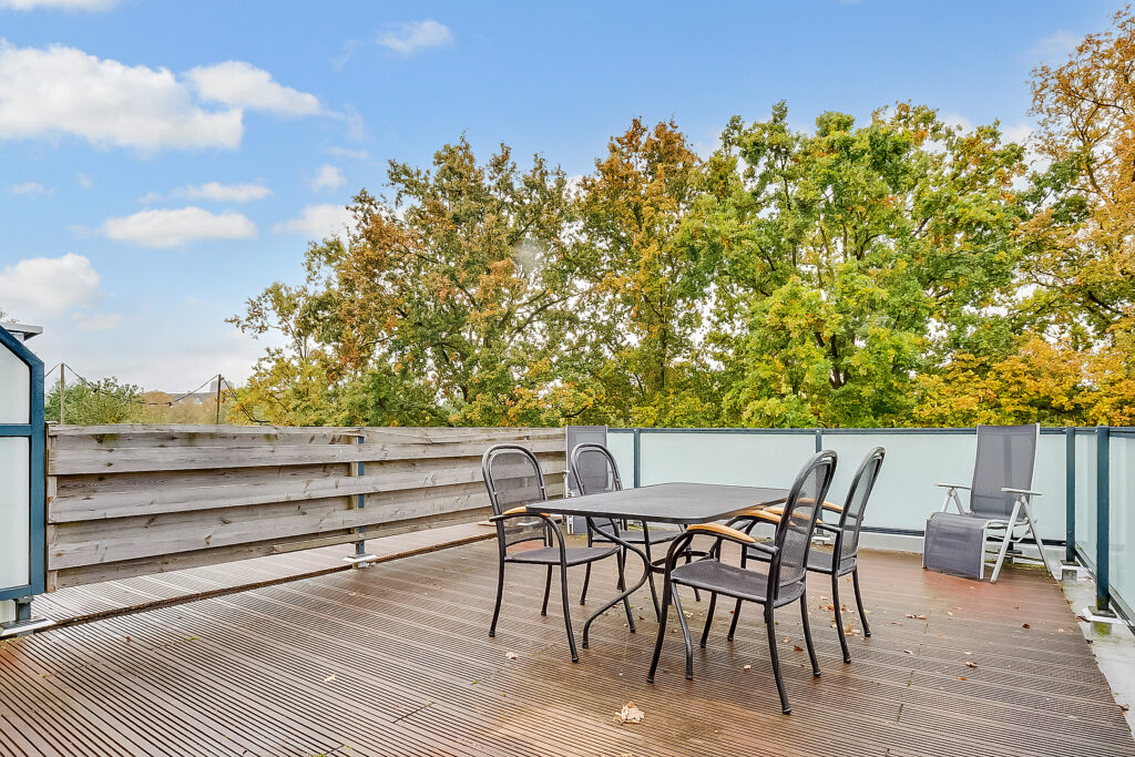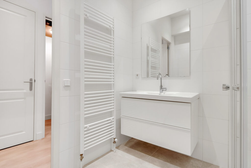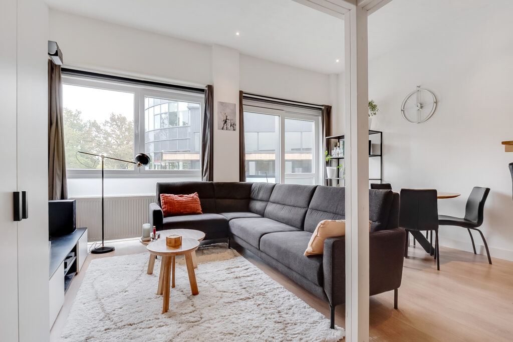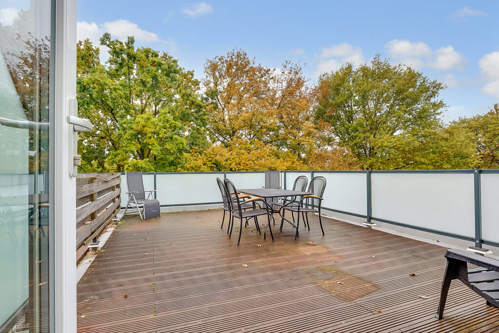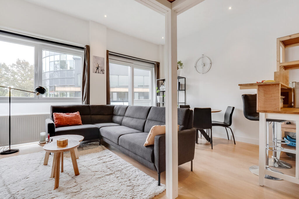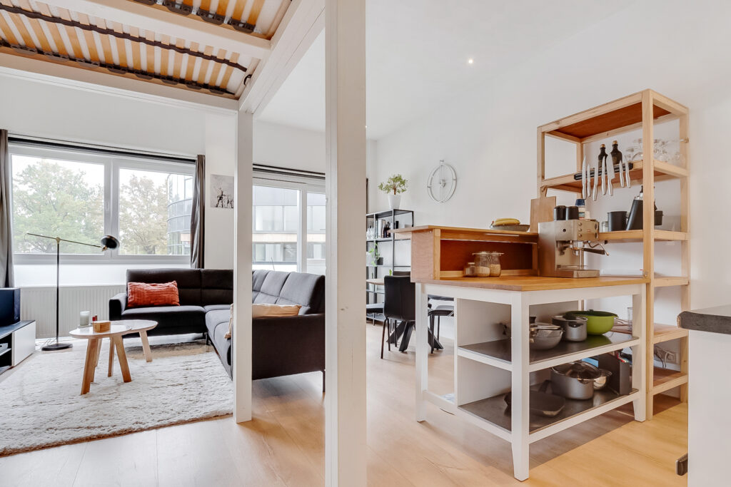 De royale living verrast met bijzonder hoge plafonds en grote raampartijen, waardoor de ruimte heerlijk licht is. De schuifpui met Frans balkon zorgt voor een fijne verbinding met buiten. Er is voldoende plek voor zowel een comfortabele zithoek als een ruime eettafel.