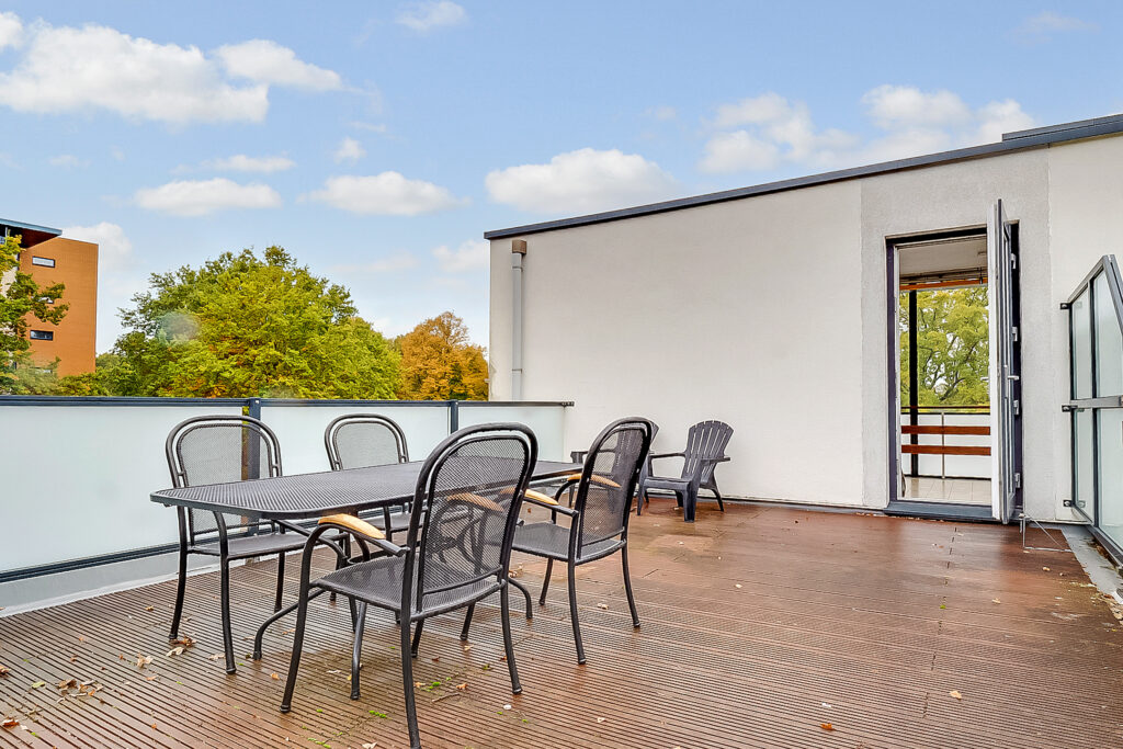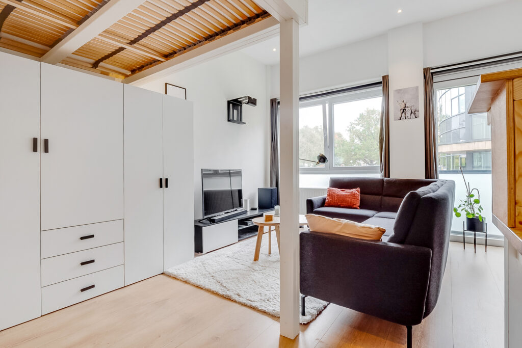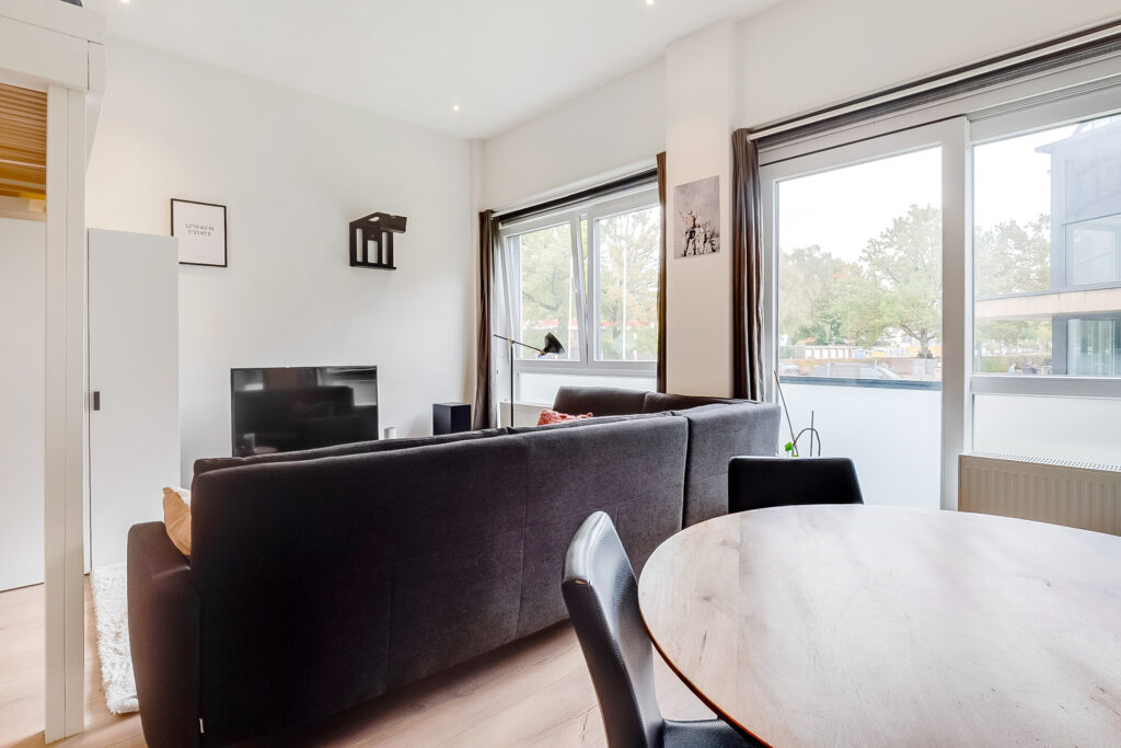 Deze moderne en goed afgewerkte woonstudio is gelegen op de begane grond en beschikt over een lichte living met slaapgedeelte en Frans balkon, moderne keuken, luxe badkamer en praktische bergruimtes. Op de eerste verdieping is een gezamenlijk dakterras van circa 35 m² op het zuidwesten met vrij uitzicht over het Valleikanaal.