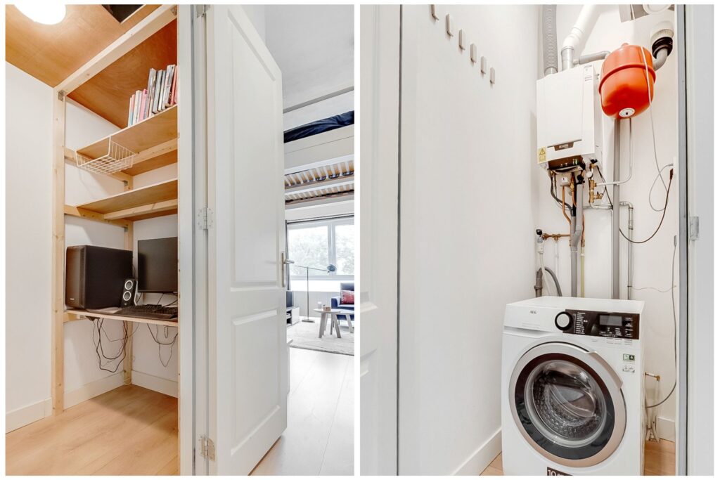 Via de entree kom je in de hal met toegang tot een praktische inpandige berging, die momenteel is ingericht als werkkamer. In de separate bergkast bevinden zich de cv-combiketel en de aansluiting voor de wasmachine.
