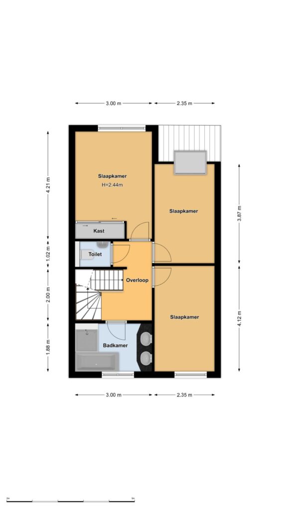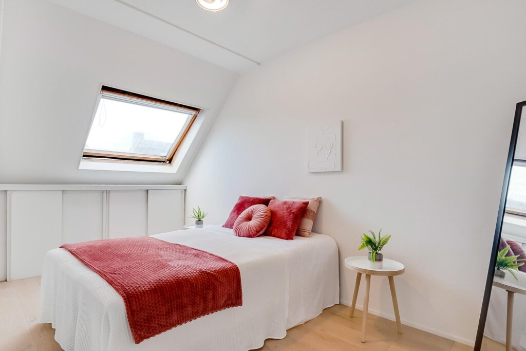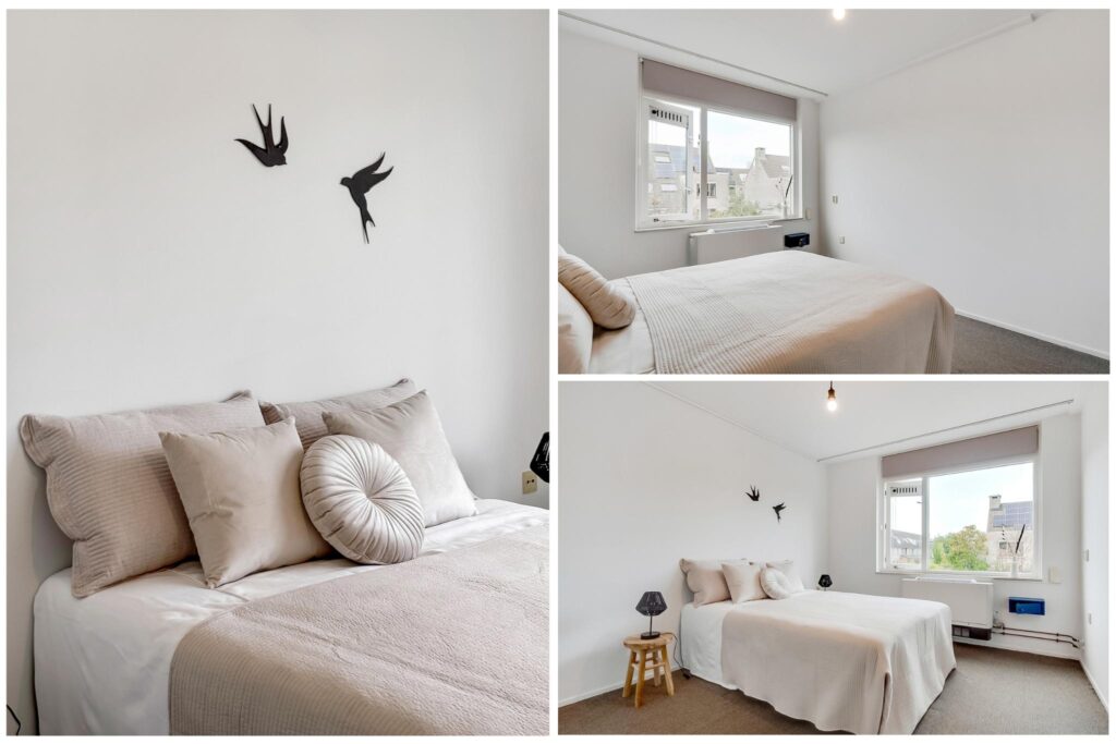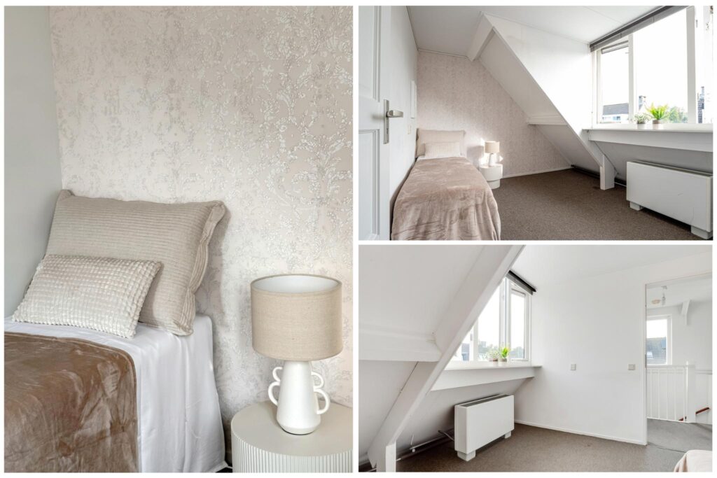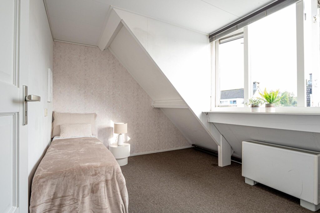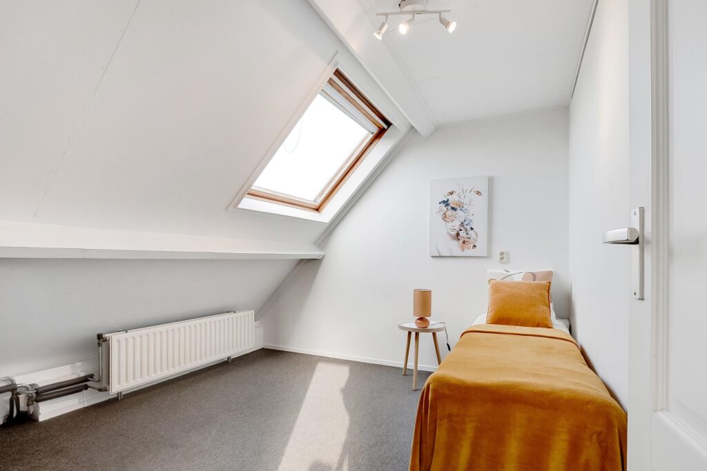 Er zijn op deze verdieping drie slaapkamers. Twee slaapkamers aan de achterzijde waarvan één met vaste kastenwand en een slaapkamer aan de voorzijde voorzien van een Velux dakraam.