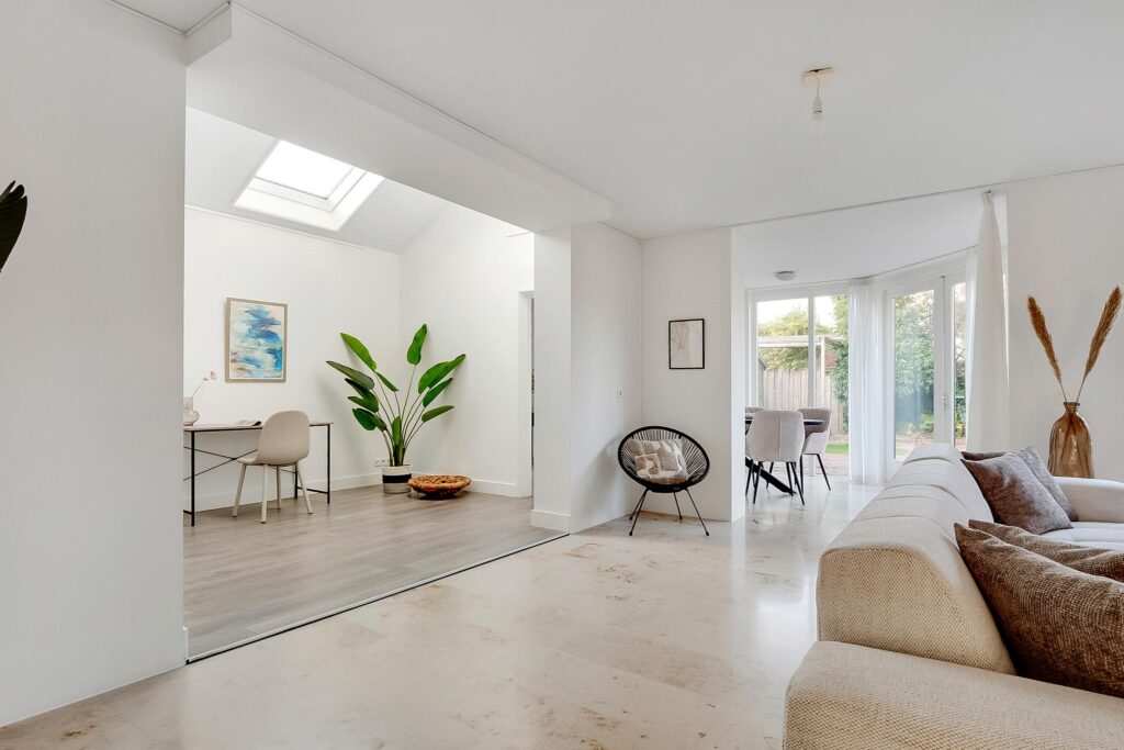 Deze ruime uitgebouwde TWEE-ONDER-EEN KAPWONING met voor- en achtertuin, biedt een uitstekende combinatie van ruimte en functionaliteit. De uitgebouwde woonkamer is speels ingedeeld en als extra is er naast de uitbouw ook nog een gedeelte van de garage bij de woonkamer betrokken, wat zorgt voor een aangename en ruimtelijke sfeer. Zowel de keuken als de badkamer zijn in nette staat en de natuurstenen vloeren dragen bij aan een hoogwaardige afwerking. Er zijn maar liefst vijf slaapkamers en de woning heeft een woonoppervlakte van circa 153 m². Gelegen op een uitstekende locatie, biedt deze woning een ideale basis voor comfortabel wonen.