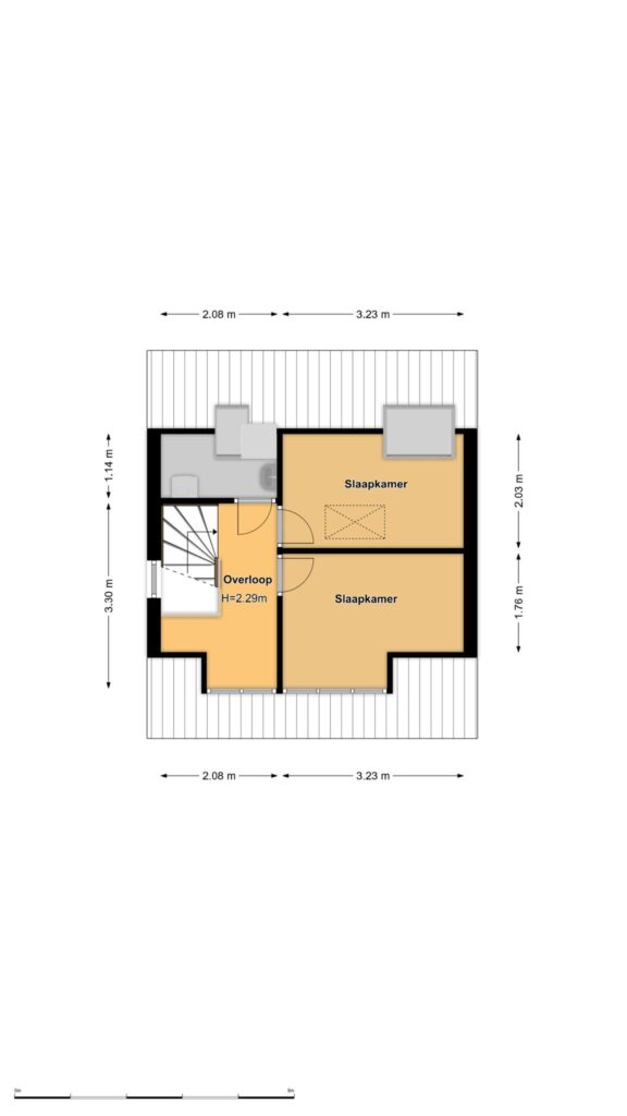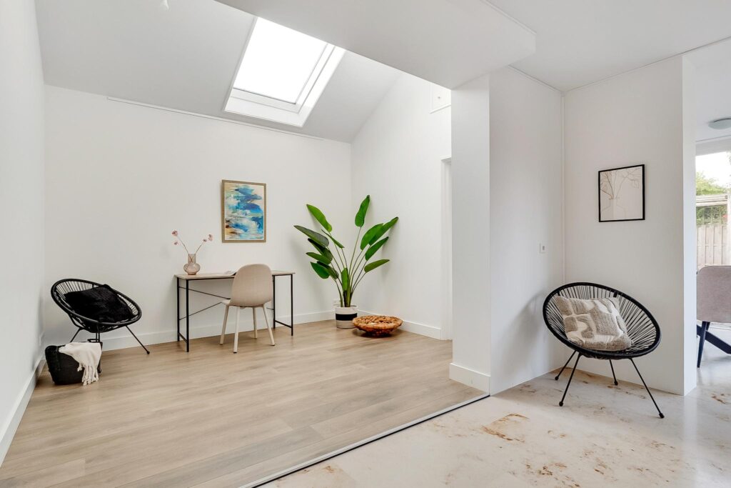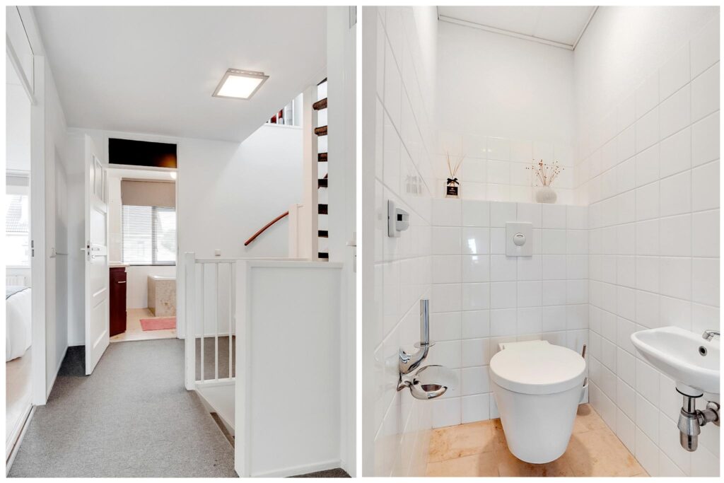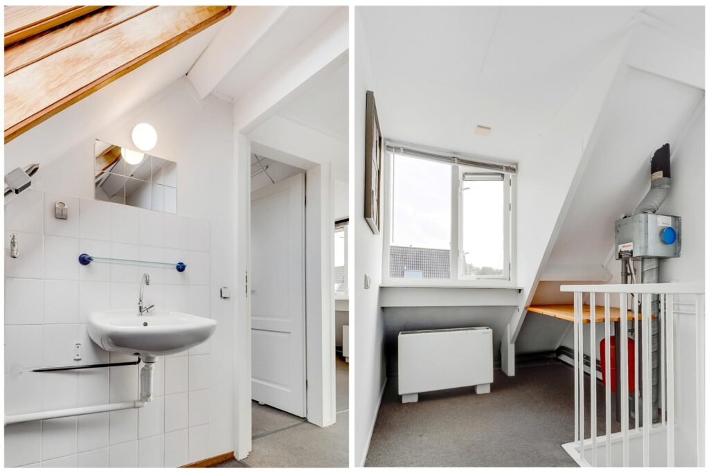 2e Verdieping: voorzolder met een dakkapel aan de voorzijde en een raam aan de zijkant. Wasruimte en twee slaapkamers. De wasruimte is voorzien van een vaste wastafel, Velux dakraam en opstelplaats voor de wasmachine/droger en cv-ketel. De slaapkamer aan de voorzijde is voorzien van een dakkapel en de slaapkamer aan de achterzijde is voorzien van een Velux dakraam.