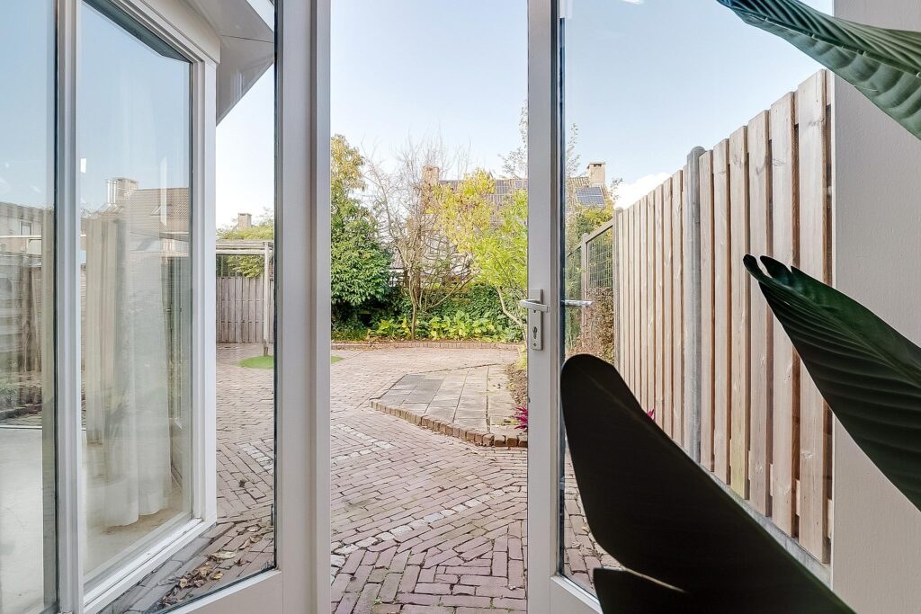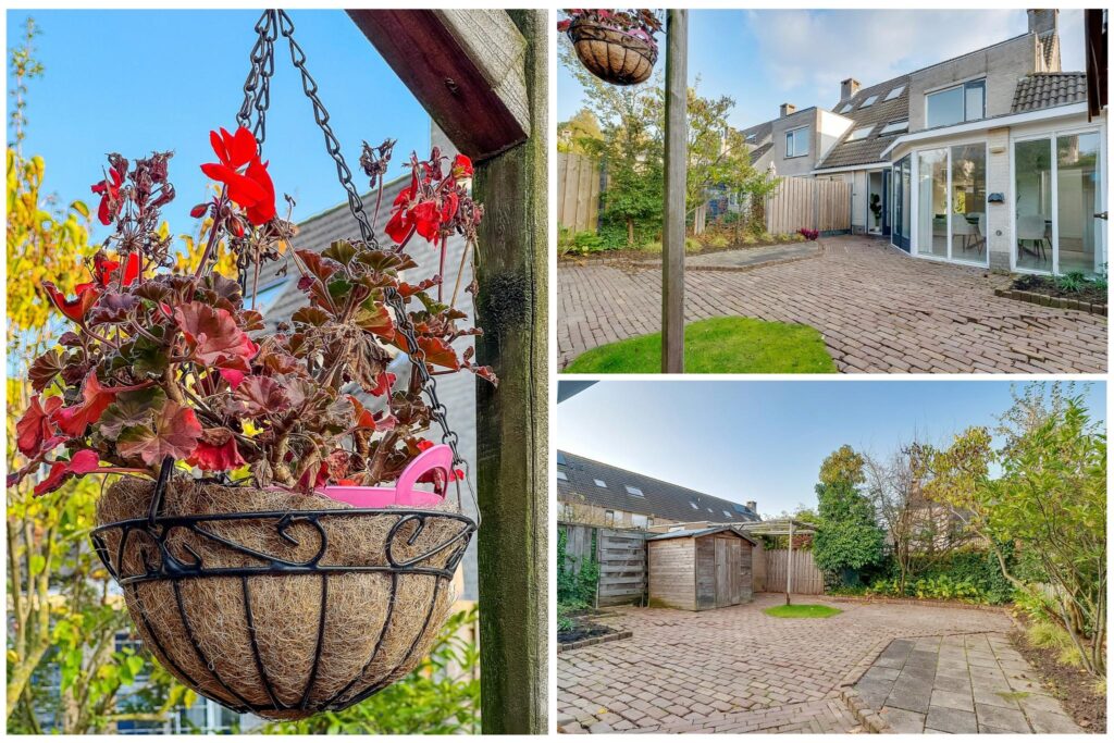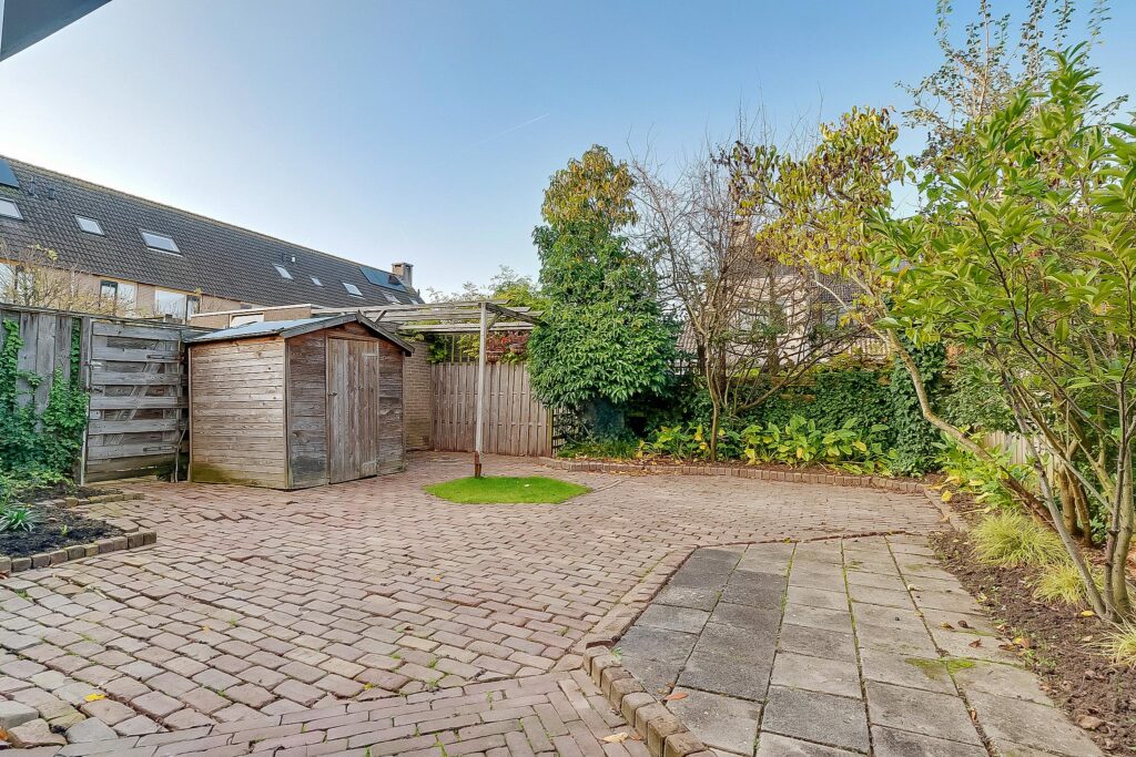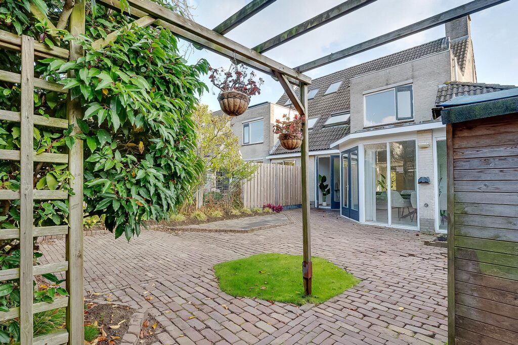 Tuin: de voortuin is ca. 7 meter diep en gelegen op het zuid/oosten. Parkeergelegenheid is er op eigen terrein en er is tevens een terras. De achtertuin ca. 11 meter diep en ongeveer 9 meter breed en is gelegen op het noord/westen. De tuin is ingedeeld met meerdere zonneterrassen en groenborders en bied volop privacy. In de zomermaanden is er vanaf ca. 11.00 tot 19.00 uur zon in de tuin. De tuin is tevens voorzien van buitenverlichting en een buitenkraan. Door de hoekligging is er een achterom via een zijpad.