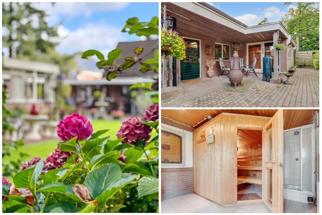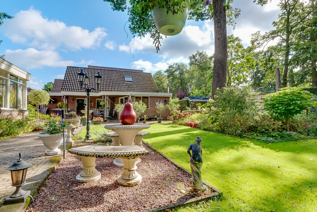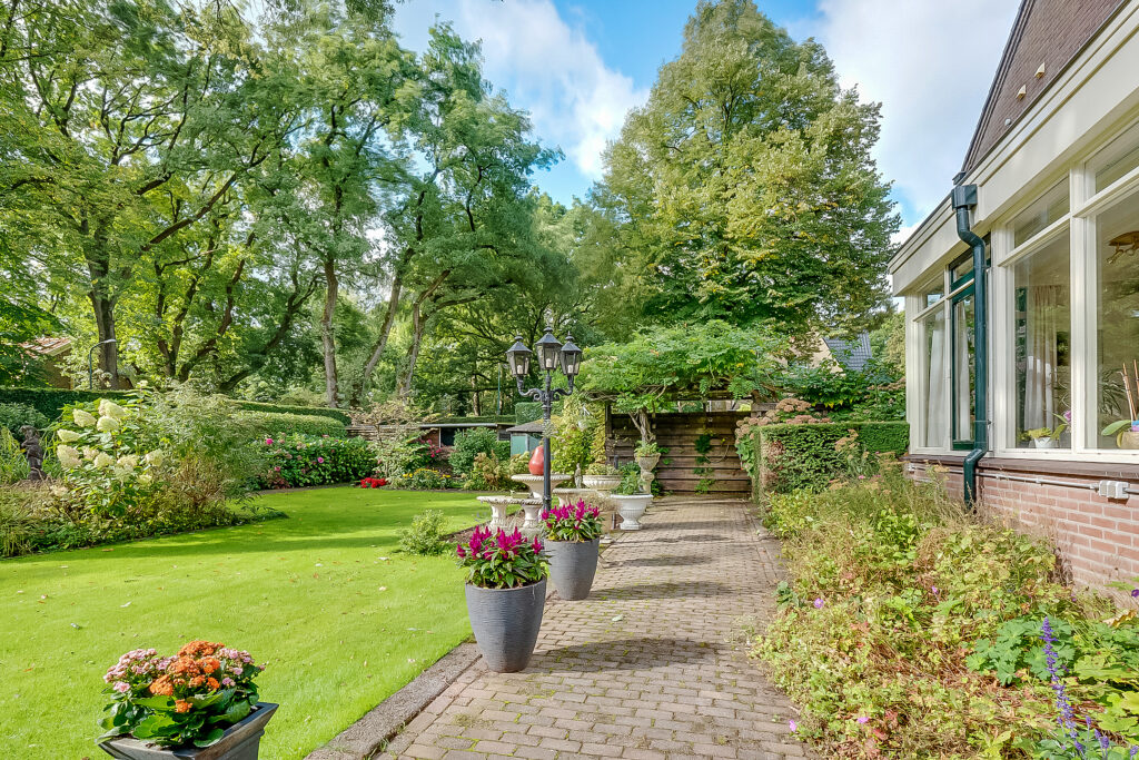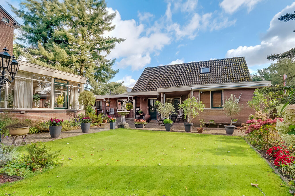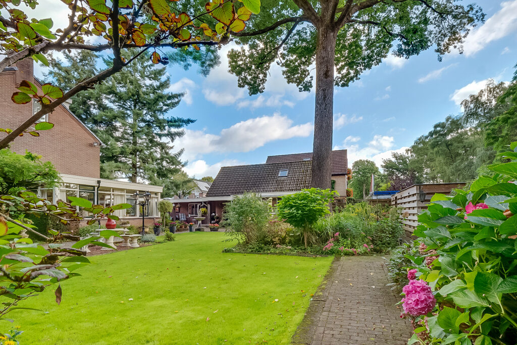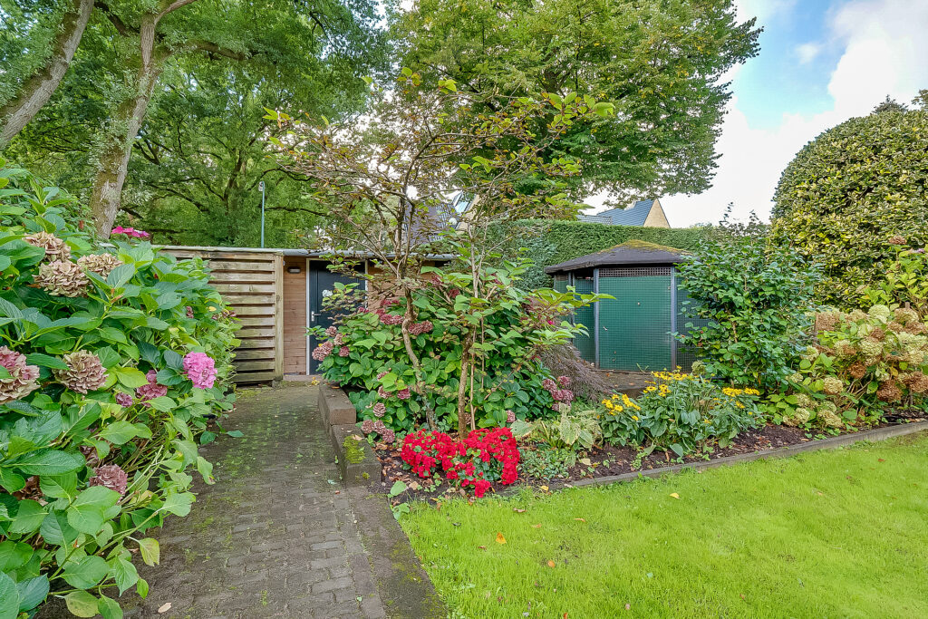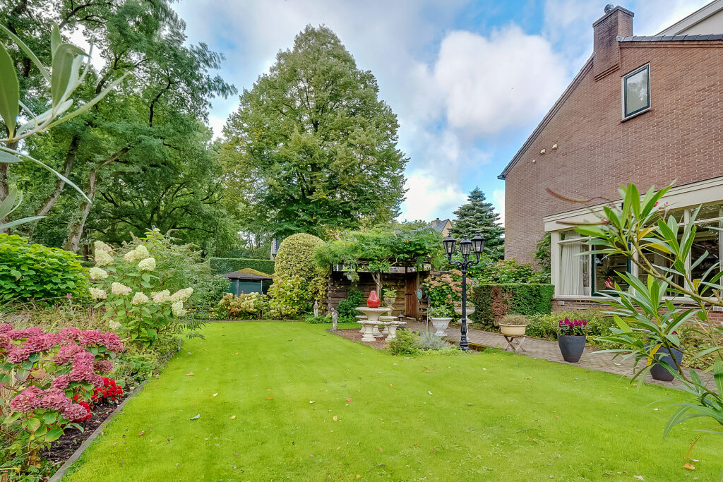 De woning ligt op een ruim perceel van 956 m² met een verzorgde, zonnige achtertuin. De tuin biedt volop privacy en diverse mogelijkheden om te ontspannen of te recreëren. Met een groot terras, groene borders en voldoende ruimte voor speel- of hobbyhoekjes is dit een ideale plek voor gezinnen of tuinliefhebbers. Daarnaast zijn er een berging en een bijgebouw met sauna, waardoor ook wellness en praktische opslag makkelijk gecombineerd worden.