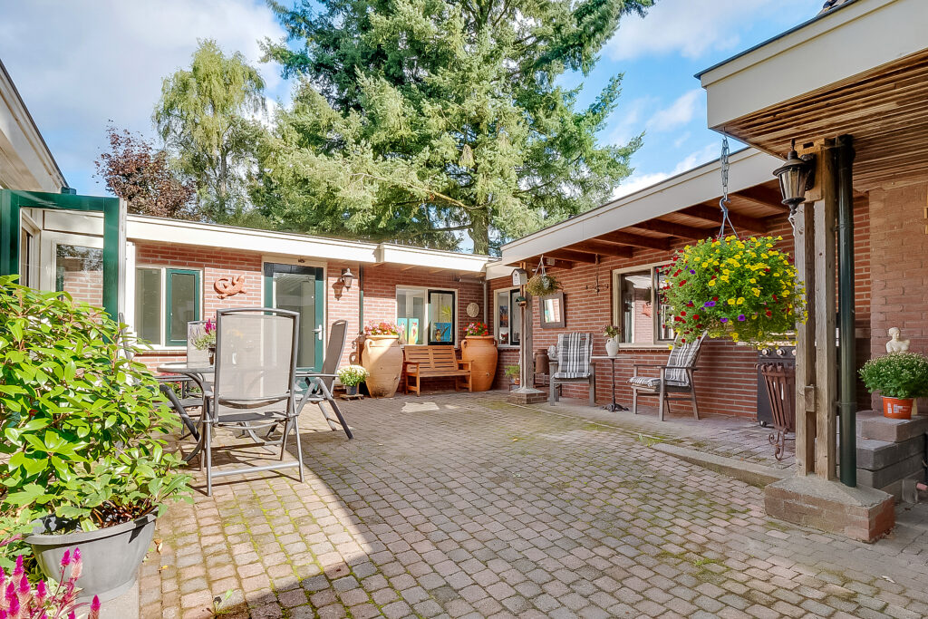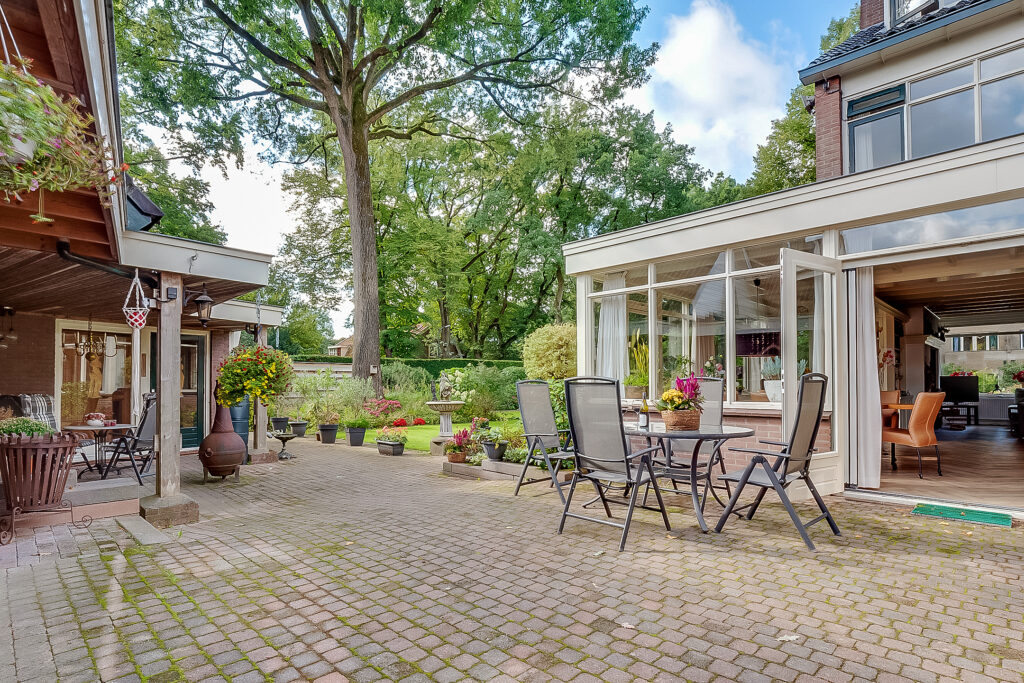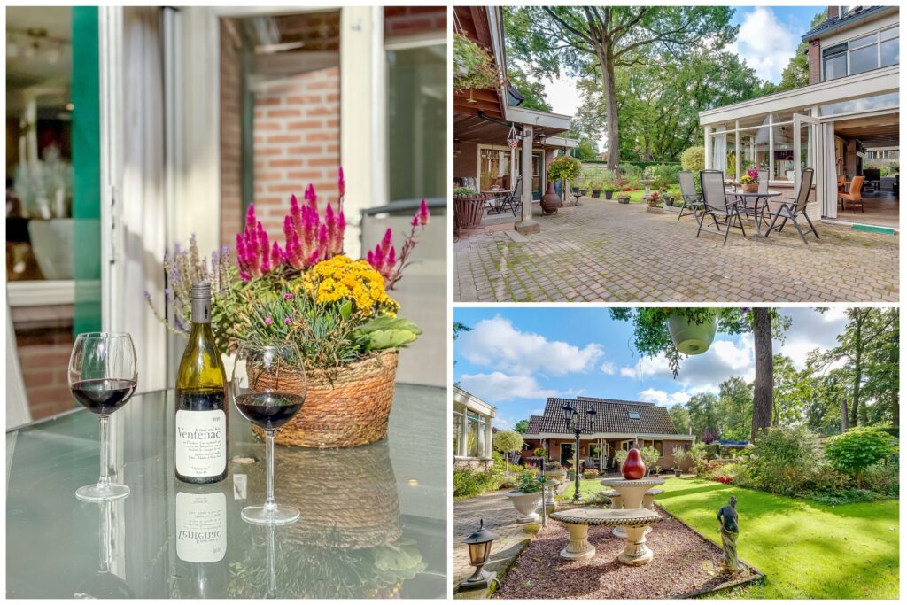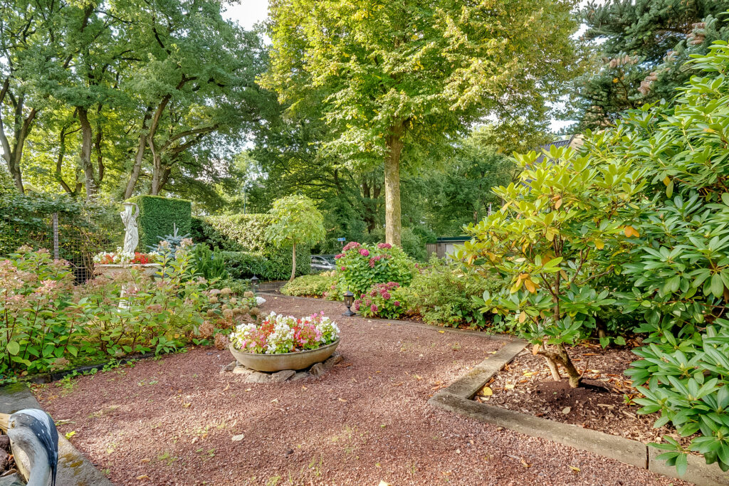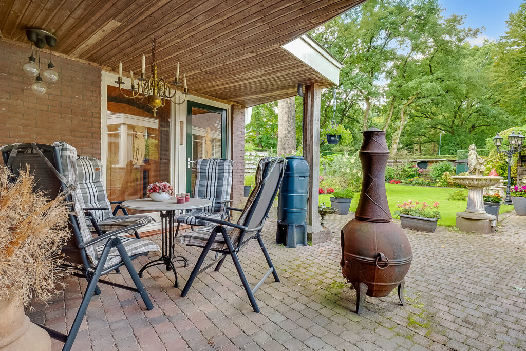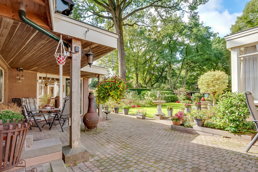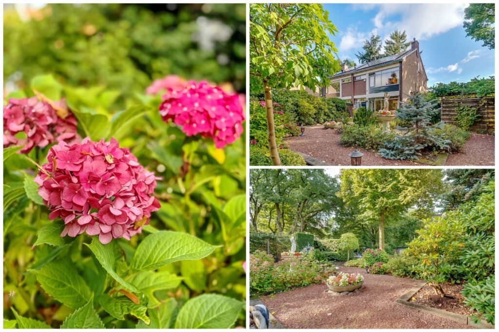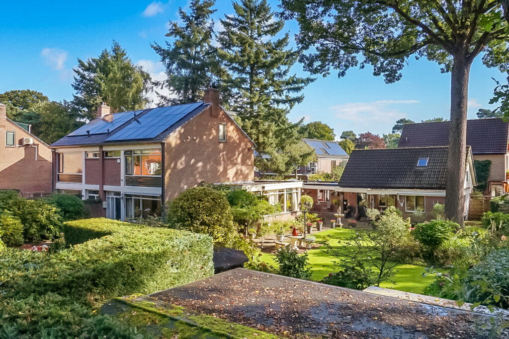 De woning ligt op een ruim perceel van 956 m² met een verzorgde, zonnige achtertuin. De tuin biedt volop privacy en diverse mogelijkheden om te ontspannen of te recreëren. Met een groot terras, groene borders en voldoende ruimte voor speel- of hobbyhoekjes is dit een ideale plek voor gezinnen of tuinliefhebbers. Daarnaast zijn er een berging en een bijgebouw met sauna, waardoor ook wellness en praktische opslag makkelijk gecombineerd worden.