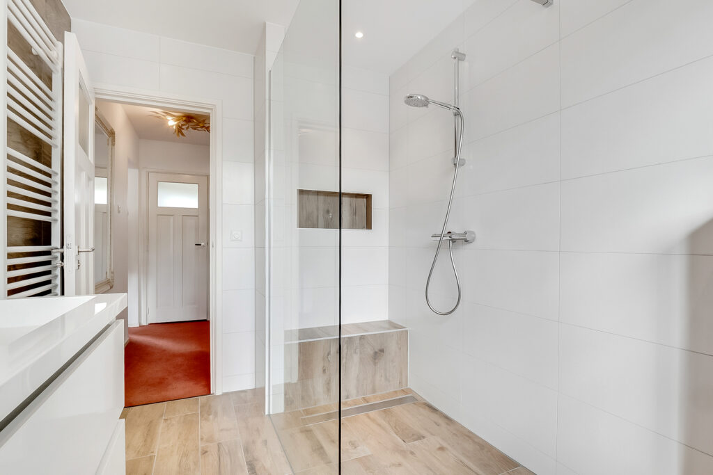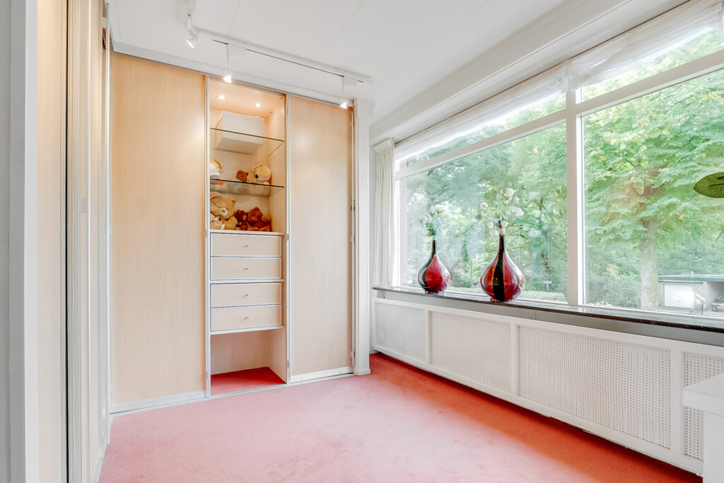 De overloop geeft toegang tot een ruime slaapkamer met royale walk-in-closet. Daarnaast is er een tweede (werk)kamer en een moderne badkamer met inloopdouche, wastafel en toilet. Deze verdieping combineert comfort en functionaliteit en biedt volop ruimte voor het gezin.