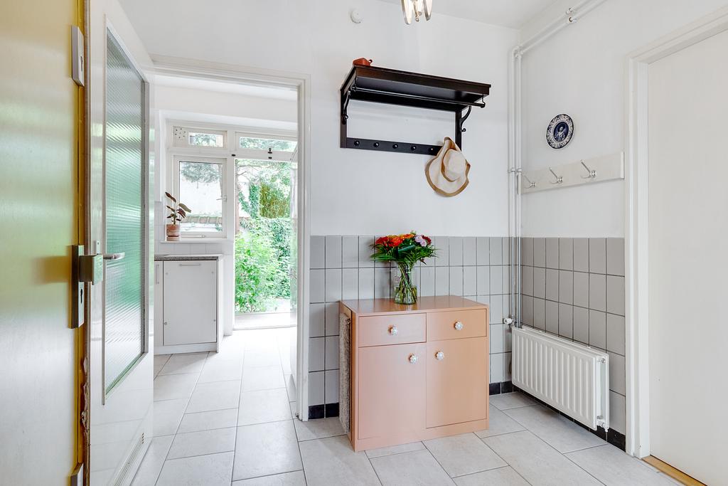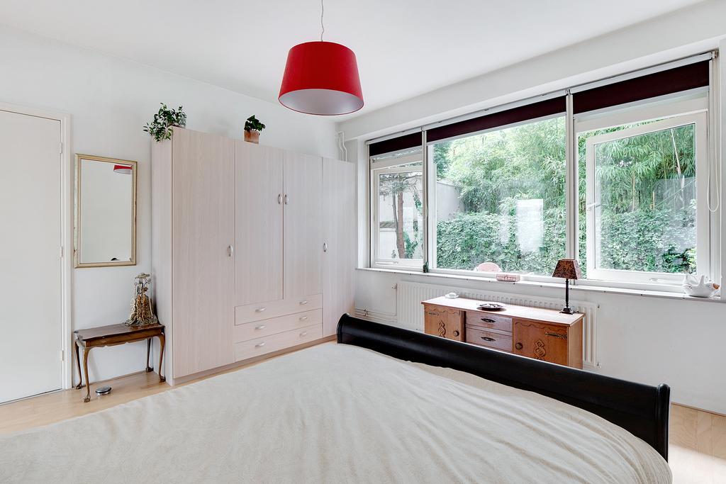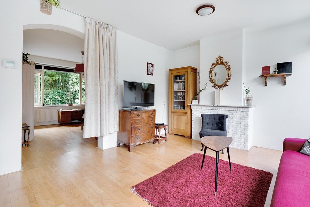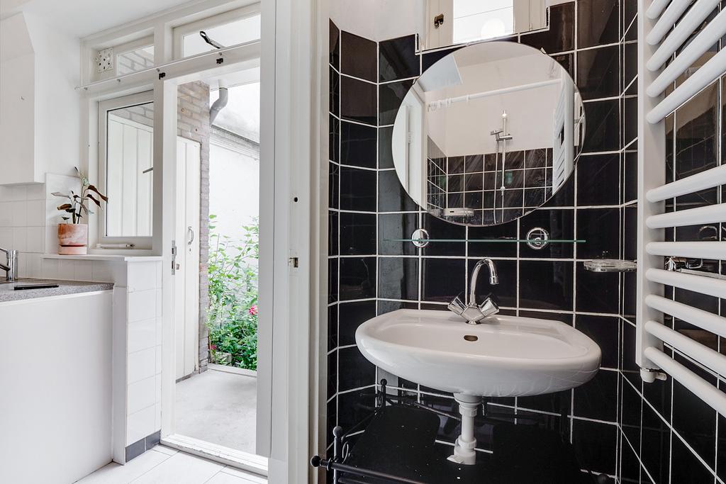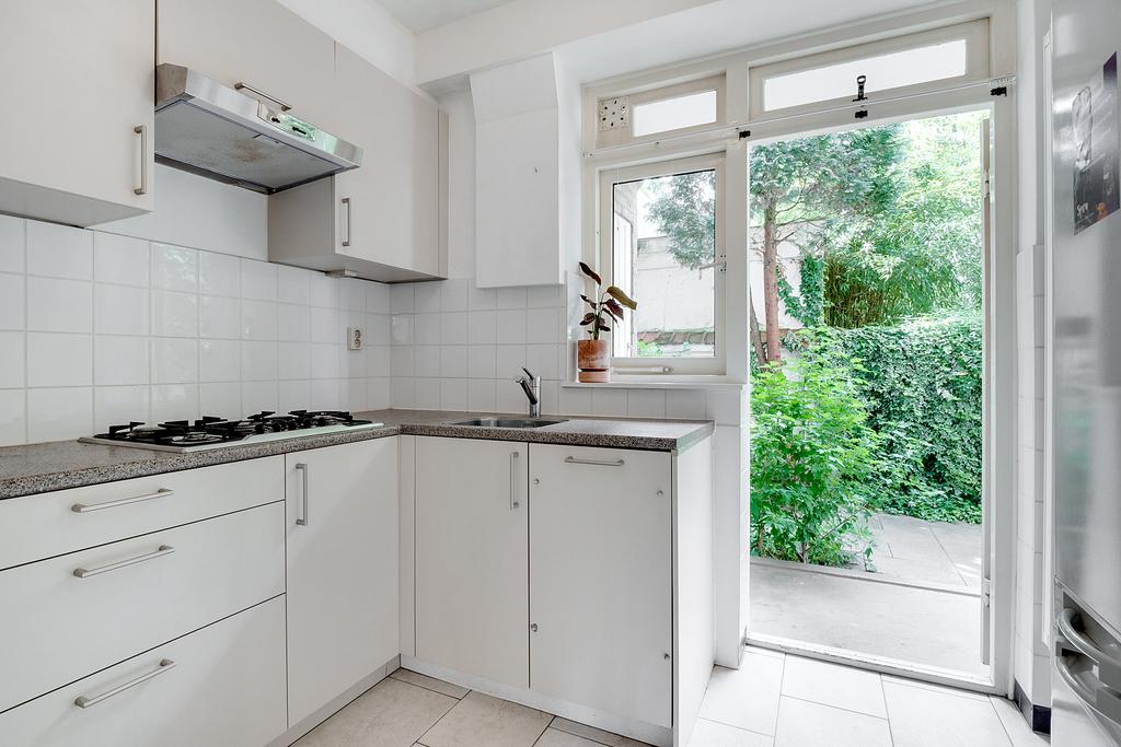 De omringende bebouwing links en rechts van het pand vormt een wal voor het straatgeluid waardoor de tuin heerlijk rustig is, met veel vogels en met zicht op de grote bomen van een binnentuin. De tuin biedt ook veel zon en privacy; een onverwachte oase van rust.