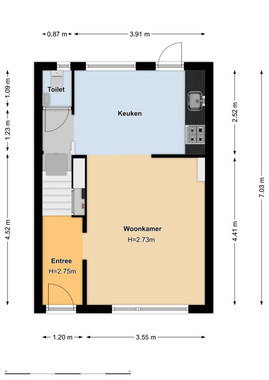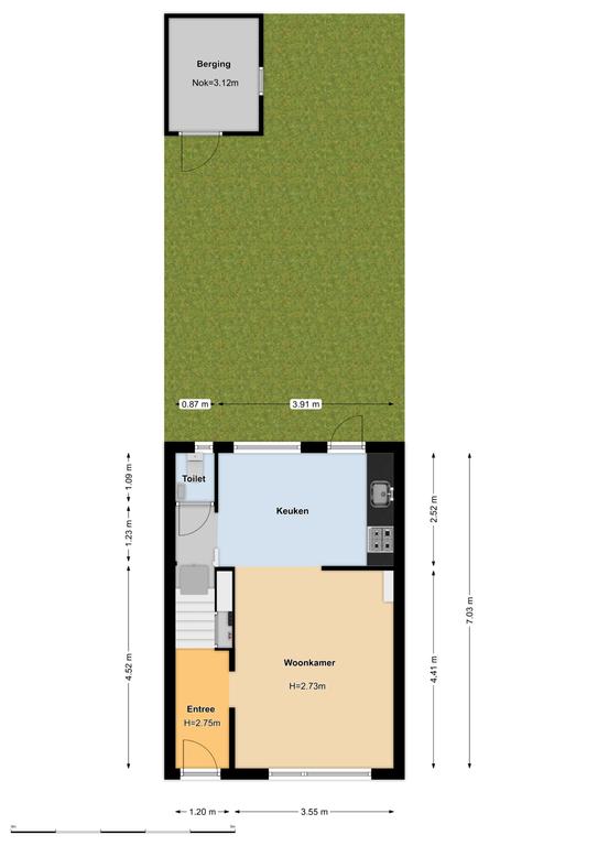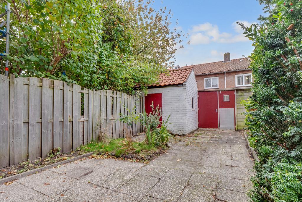 Begane grond: entree, hal met meterkast en trapopgang, lichte woonkamer, berging met wasmachineaansluiting, toilet, keuken voorzien van net keukenblok en toegang naar de ruime achtertuin met stenen berging.