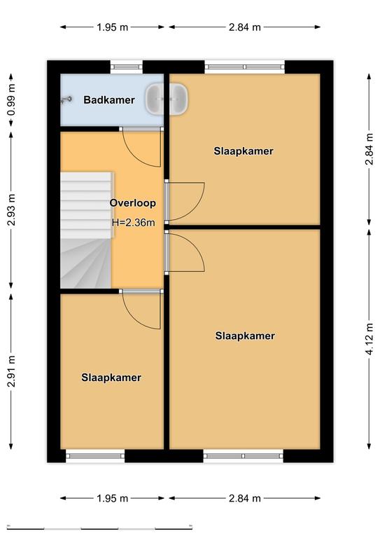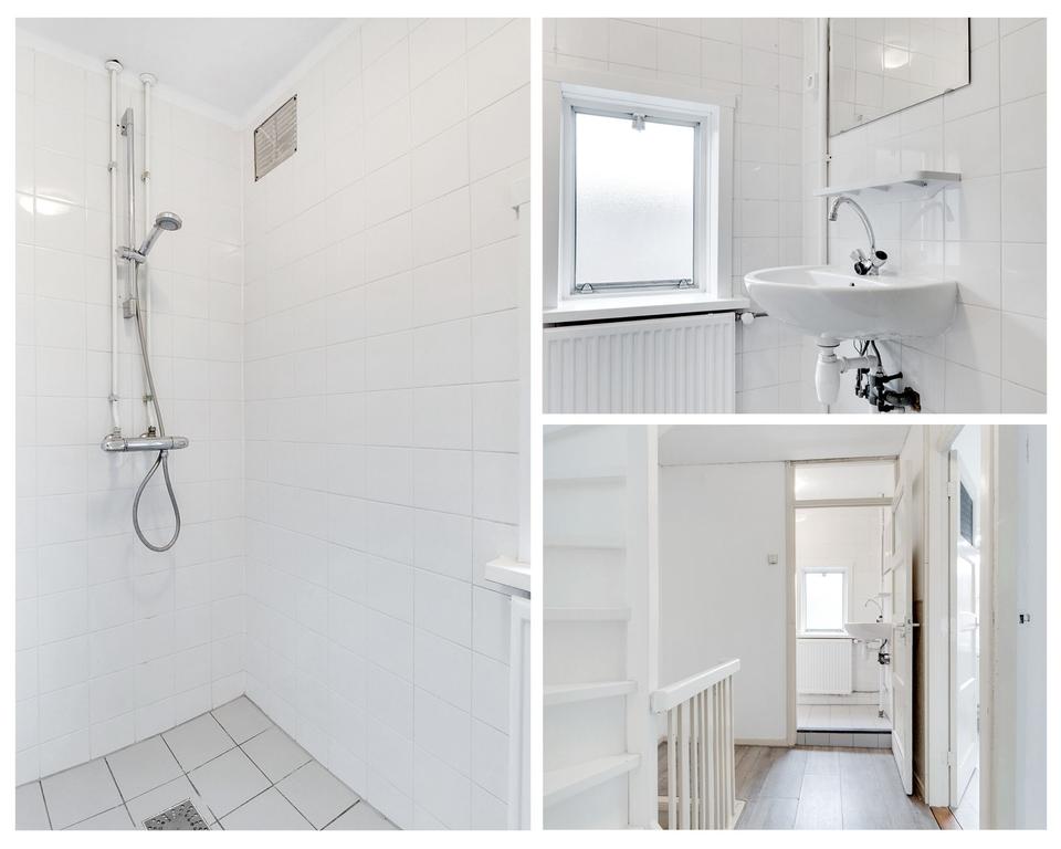 1e verdieping: overloop, twee slaapkamers aan de voorzijde met een wastafel en een slaapkamer aan de achterzijde. Badkamer met douche en wastafel.