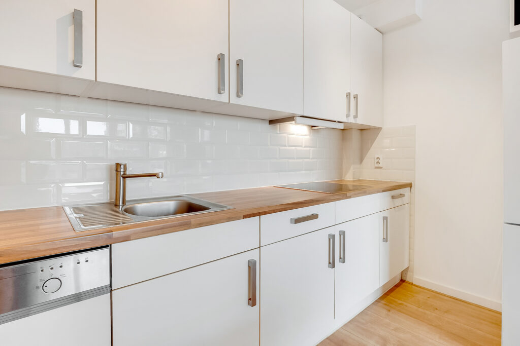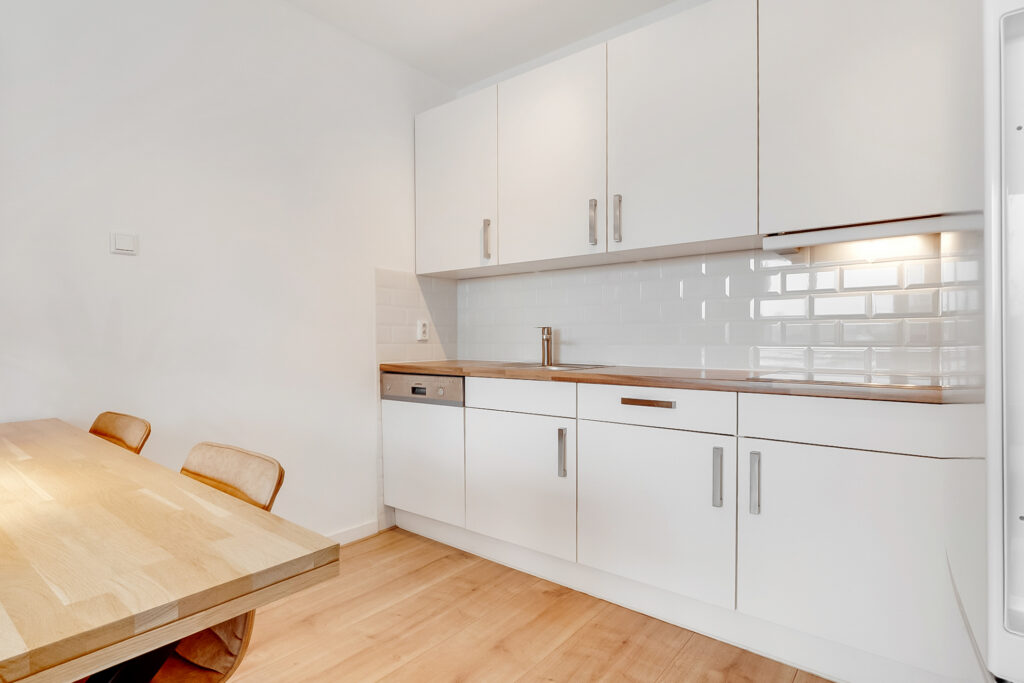 Tweede verdieping: entree met toegang tot alle vertrekken. Lichte woonkamer met open keuken, voorzien van diverse inbouwapparatuur. Vanuit de slaapkamer is er toegang naar het zonnige balkon. De badkamer is praktisch ingedeeld en beschikt over een douche, toilet en wastafel.