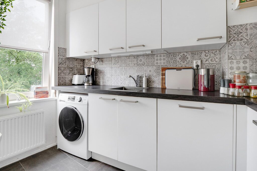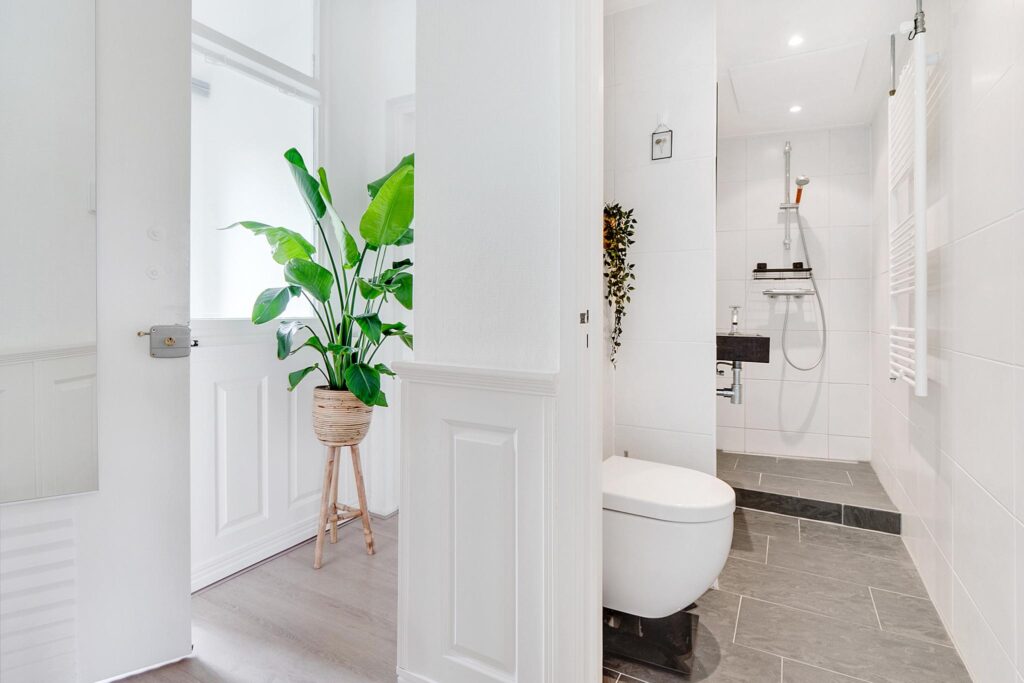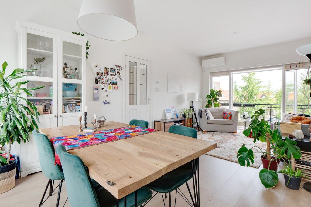 2e verdieping: entree/gang, nette en ruime keuken in hoekopstelling v.v. inbouwapparatuur (koelkast + vriesvak en wasmachine). Moderne badkamer v.v. inloopdouche, fontein en toilet. Riante, sfeervolle en lichte woonkamer v.v. mooie vloerafwerking, schouw en dubbele deuren naar het balkon. Grote slaapkamer en dubbele deuren naar het balkon. (Toplaag balkonvloer recent vernieuwd in 2023).