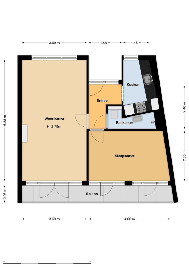 Goed onderhouden en verzorgd twee kamer appartement gelegen op de 2e en bovenste verdieping. Wat meteen opvalt is de mooie lichtinval, de houtkleurige vloeren, de mooie badkamer en nette keuken. Tevens is de indeling praktisch en is het appartement voorzien van CV en airco. De ligging, indeling, het ruime balkon en vrije uitzicht aan de voor- en achterzijde maken dit appartement extra aantrekkelijk.