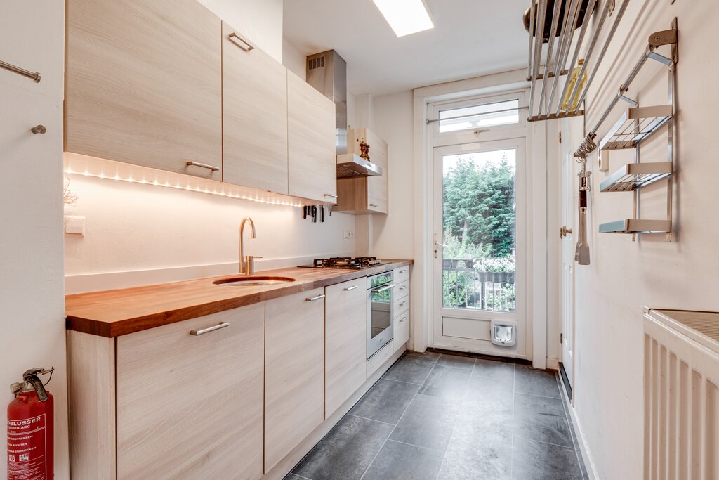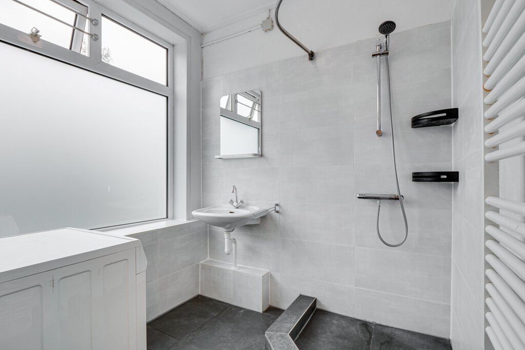 Begane grond: eigen entree en trapopgang (met bergruimte onder de trap).