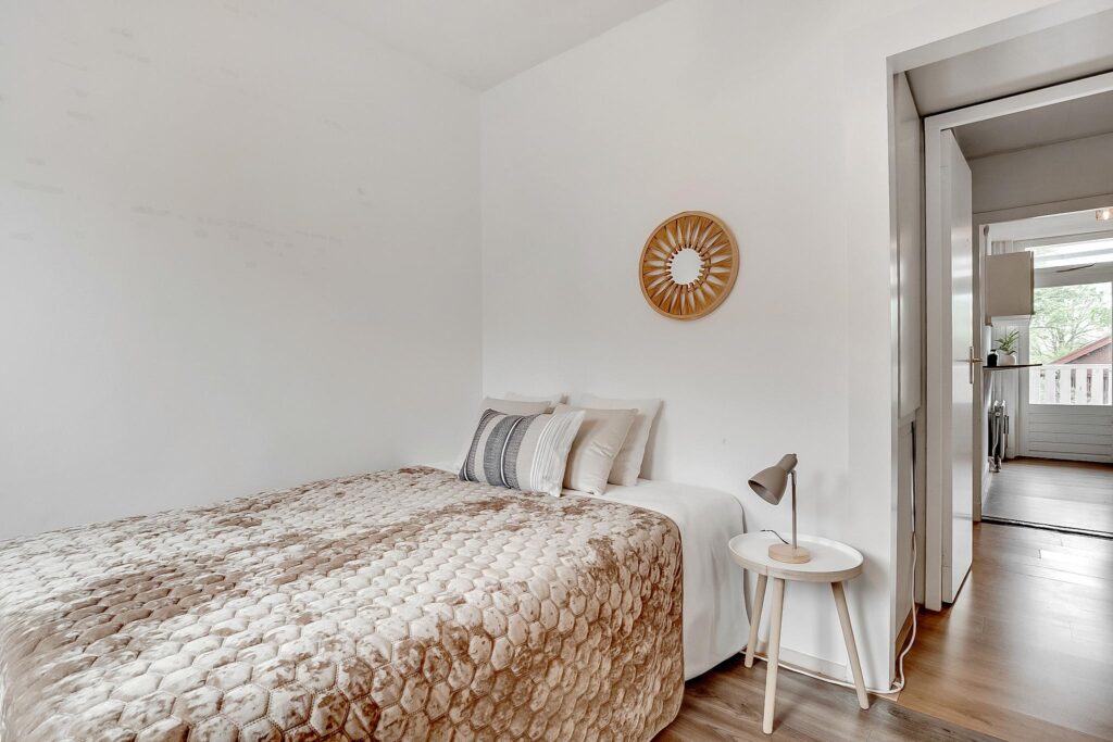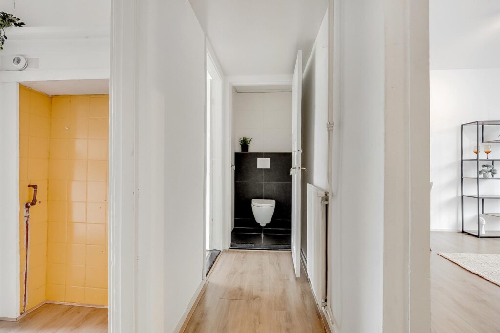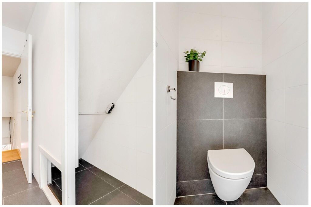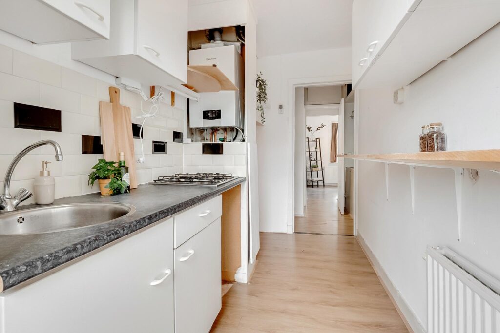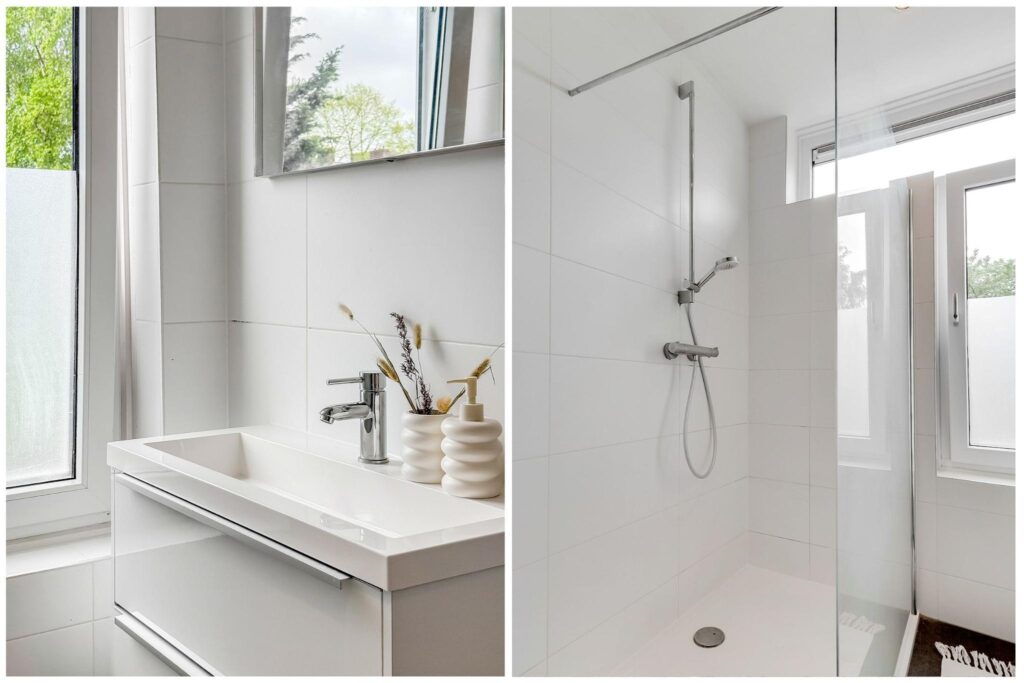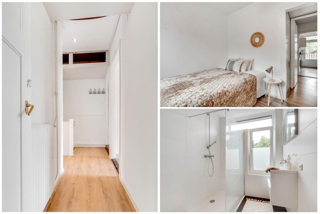 De badkamer is in 2019 gerenoveerd en voorzien van een douche, wastafel en wasmachineaansluiting. De woning beschikt over twee slaapkamers: één aan de voorzijde en één aan de achterzijde.