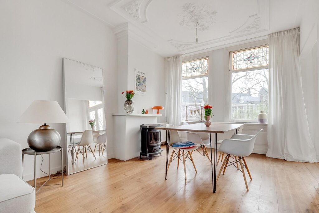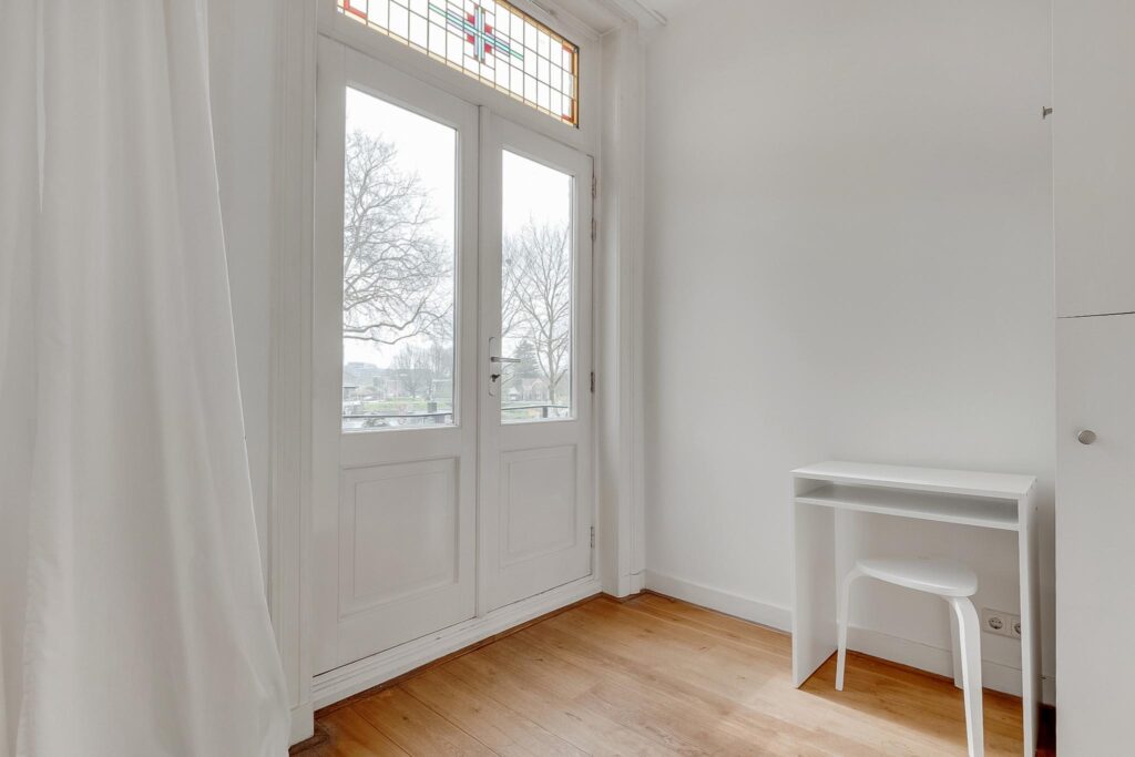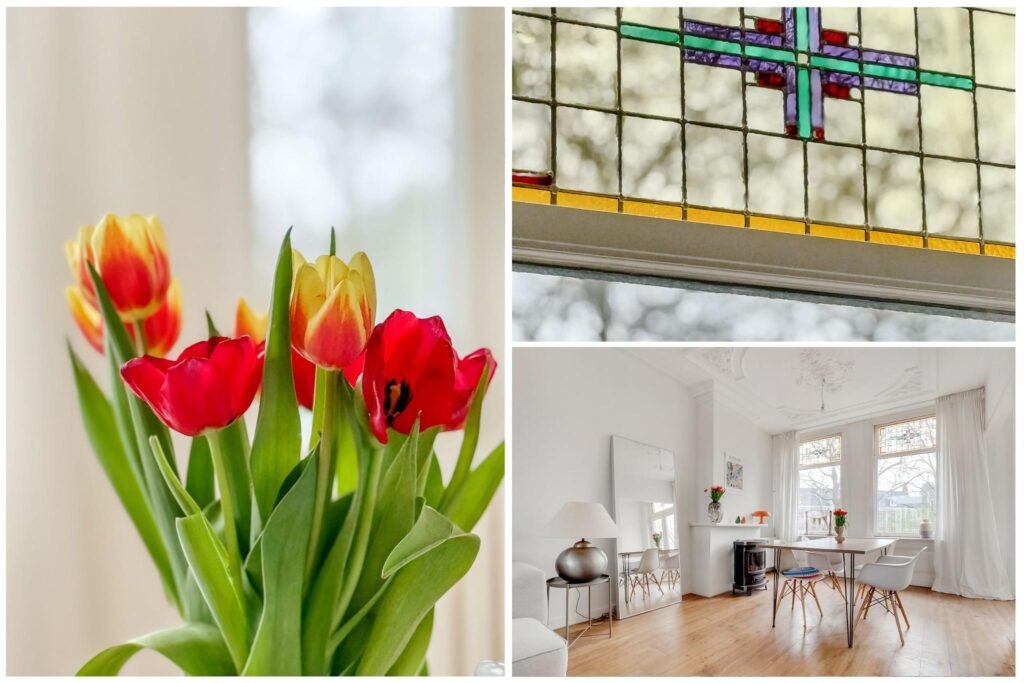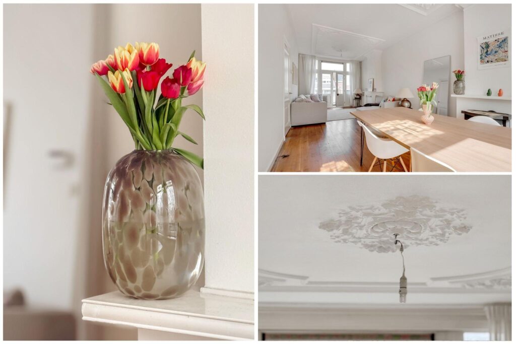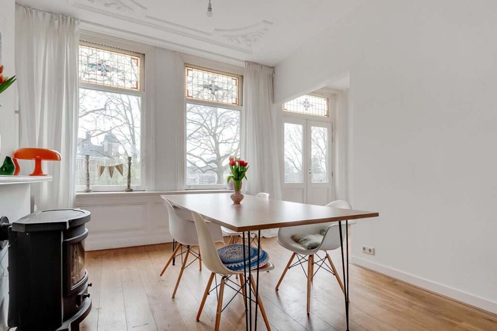 Op een toplocatie gelegen, bijzonder ruime bovenwoning met prachtige originele details zoals ornamentenplafonds en glas-in-loodramen. Vanuit de lichte woonkamer geniet je van een schitterend, vrij uitzicht op de Rijksmunt en de rivier de Leidsche Rijn.