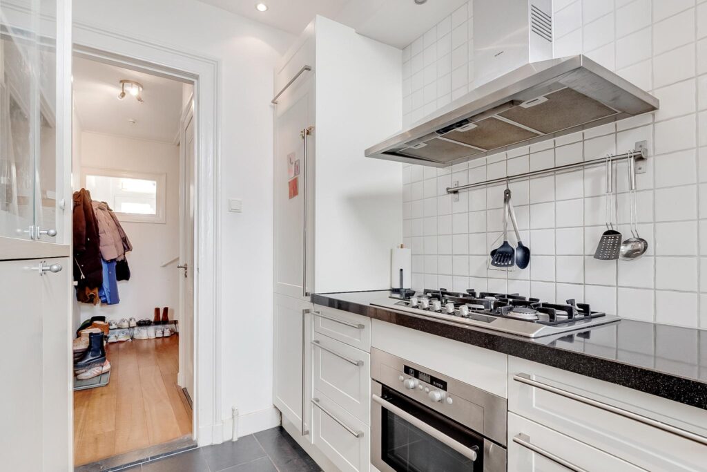 De dichte keuken is voorzien van een 5-pits gaskookplaat, vaatwasser, koel-/vriescombinatie en een combi-oven.