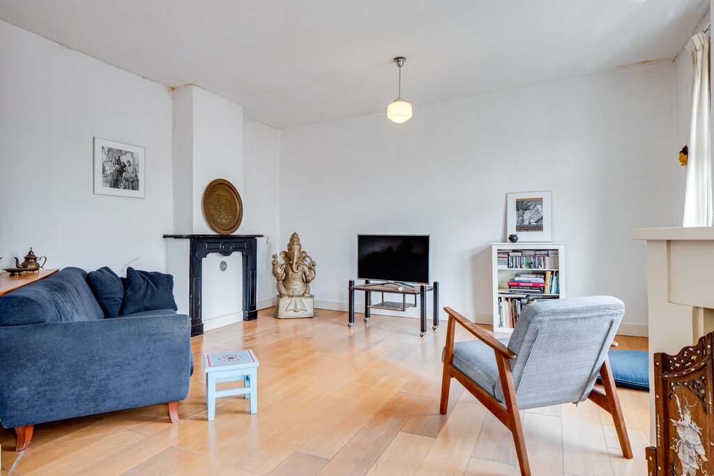 2e Verdieping: overloop; badkamer met ligbad en wastafel; ruime woonkamer met aangrenzend een praktische berging.