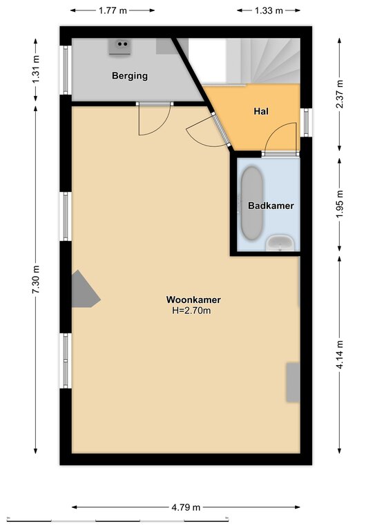 Begane grond: eigen entree en trapopgang.