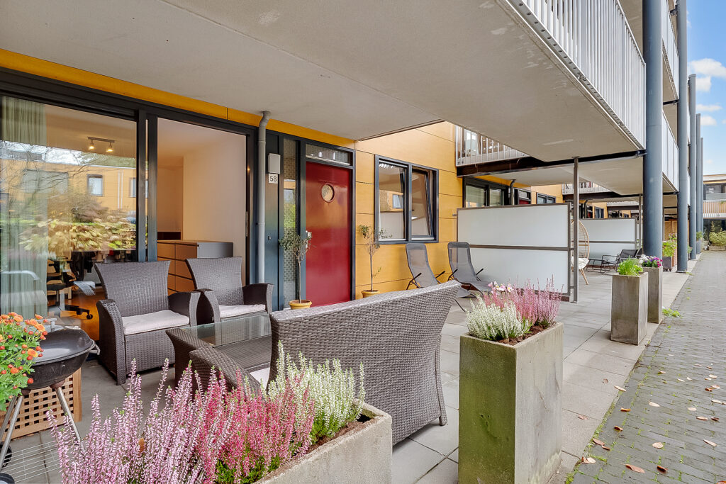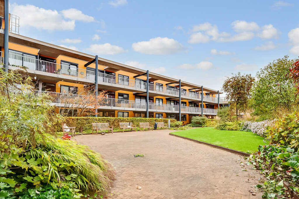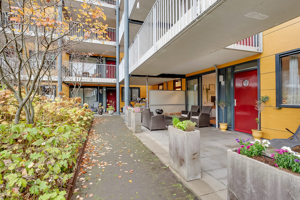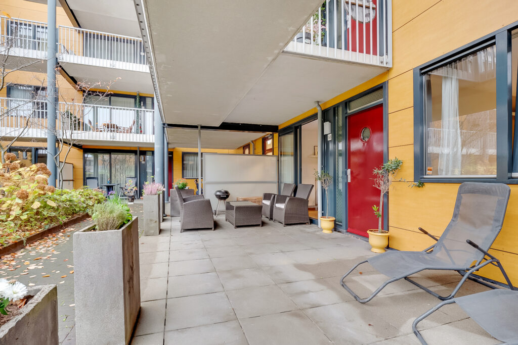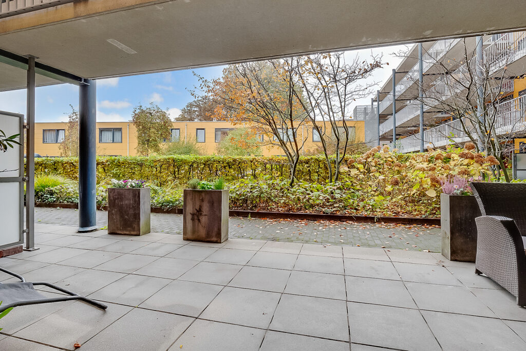 Het ruime terras van circa 23 m² (zuidwesten) is direct gelegen aan de prachtig aangelegde gemeenschappelijke binnentuin, waardoor je optimaal kunt genieten van het groen en de rustige omgeving.