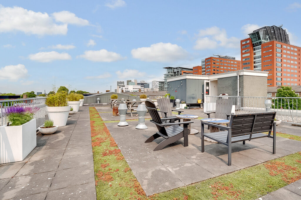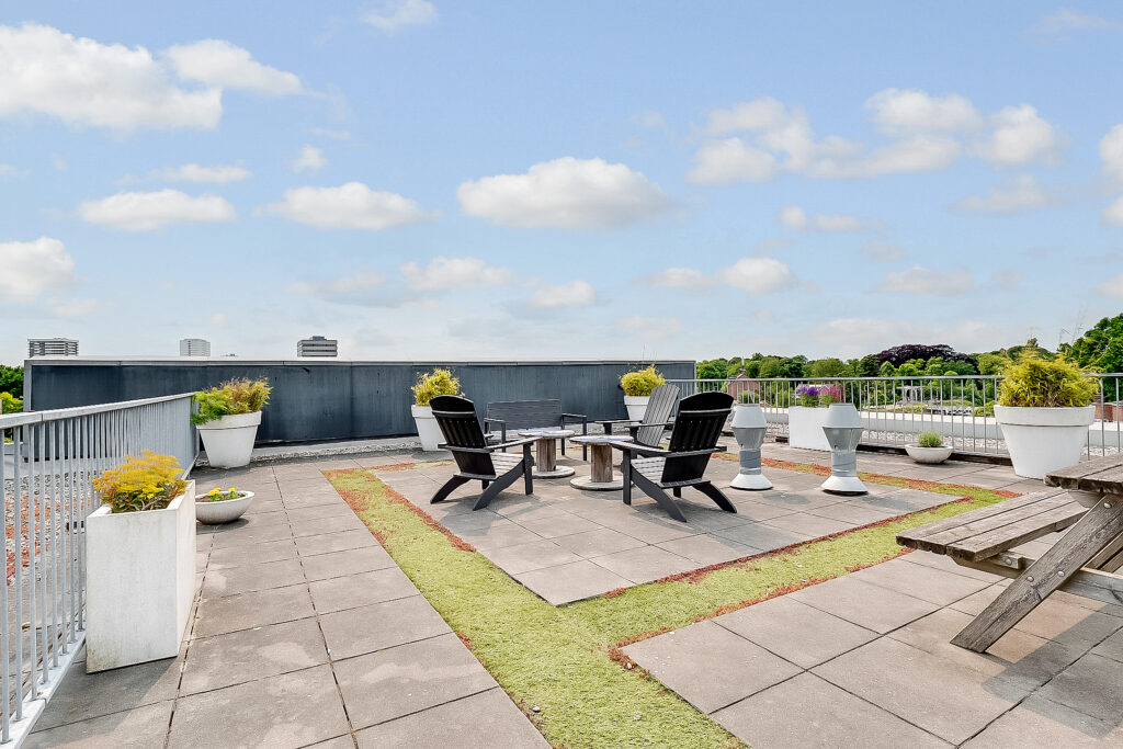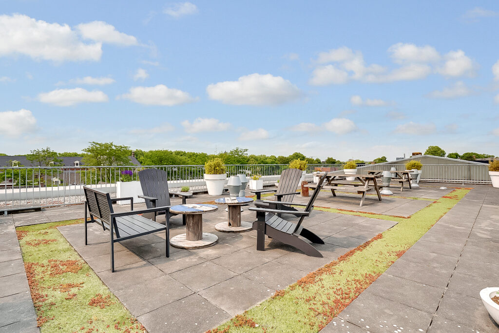 Op de 4e verdieping is een groot dakterras van circa 150 m² voor gezamenlijk gebruik.