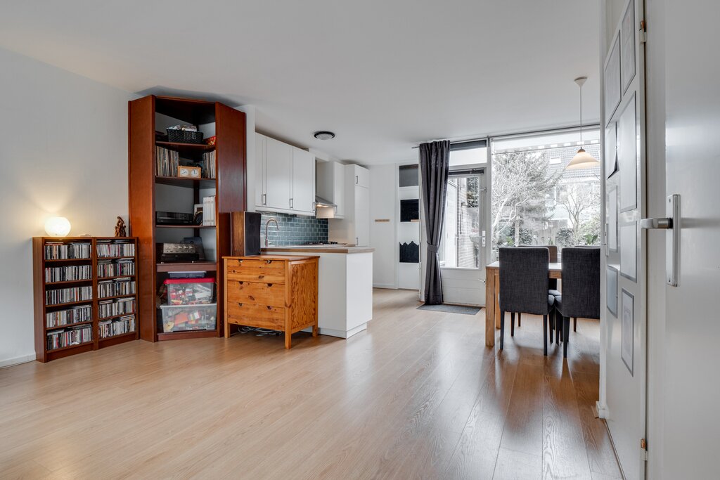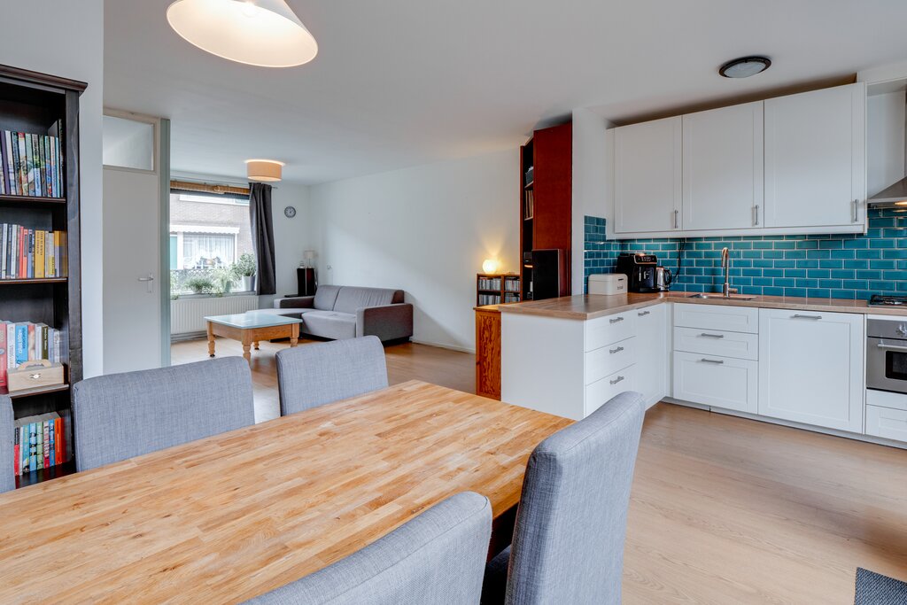 Sfeervolle, goed onderhouden en ruime tussenwoning met achtertuin (zuid/westen) en berging. De mooie ruime vertrekken zijn verdeeld over drie woonlagen met op de begane grond een ruime woonkamer en een nette open keuken welke in 2015 is vernieuwd. Bijzonder praktisch is de aangebouwde bijkeuken/berging welke eventueel ook geschikt kan zijn als extra werkkamer of hobbyruimte. De achtertuin is gelegen op het zuidwesten en er is een achterom.