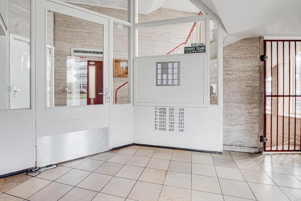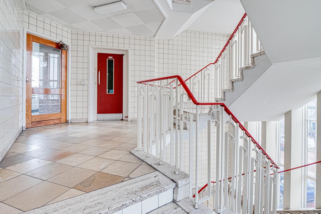 Dit stijlvolle jaren ‘50 appartementencomplex, ooit gebouwd voor de werkende alleenstaande vrouw, is niet voor niks een gemeentelijk monument. Het zeer fraaie trappenhuis (tevens voorzien van lift), de hoge plafonds en grote ramen in de typerende stijl, maken het een uniek complex.