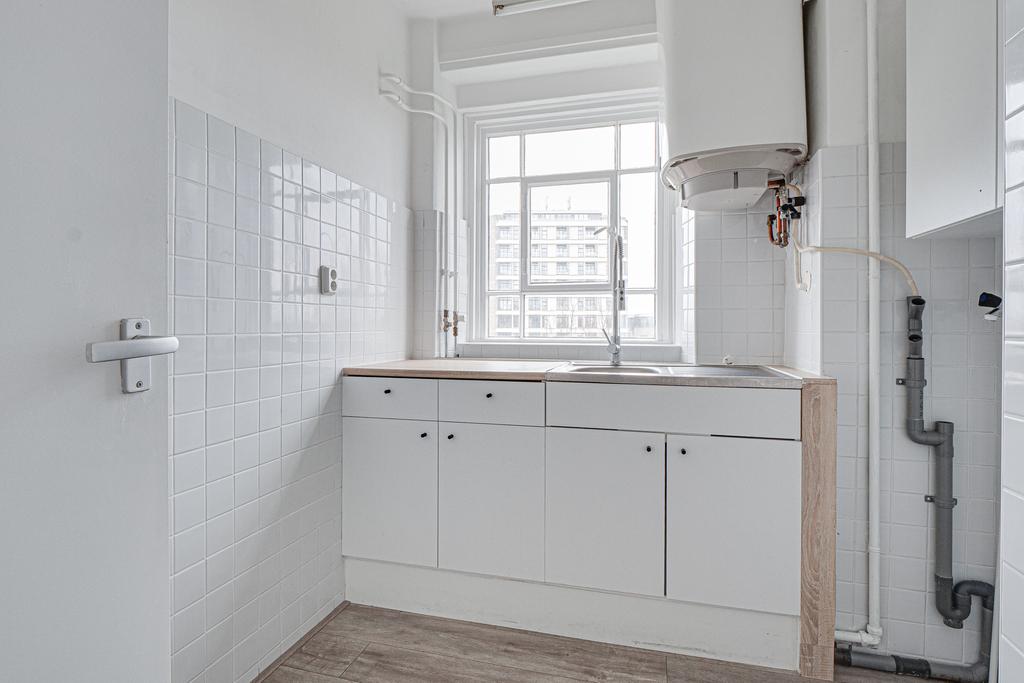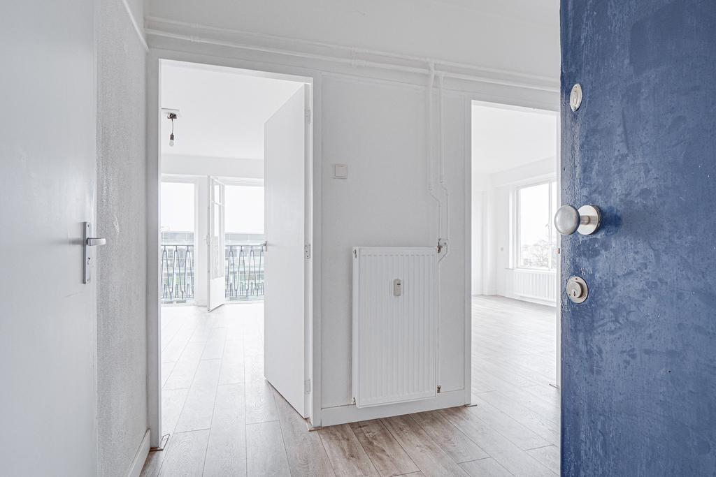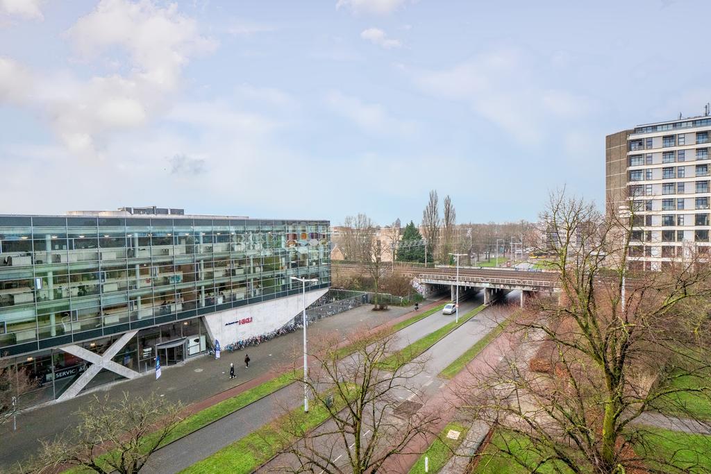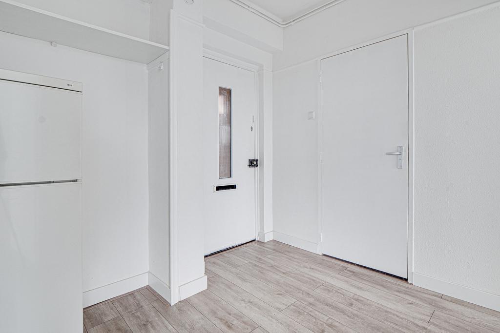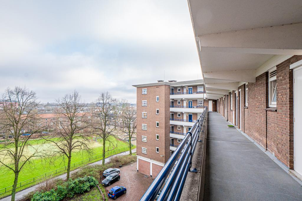 Indeling: entree/hal met garderobe; grote slaapkamer met frans balkon. De lichte woonkamer met hoekligging is voorzien van een nieuwe laminaatvloer, frans balkon en fantastisch uitzicht over de stad. Via de entree bereik je de eenvoudige maar nette keuken. De recentelijk vernieuwde badkamer heeft een regendouche, wastafelmeubel en toilet.