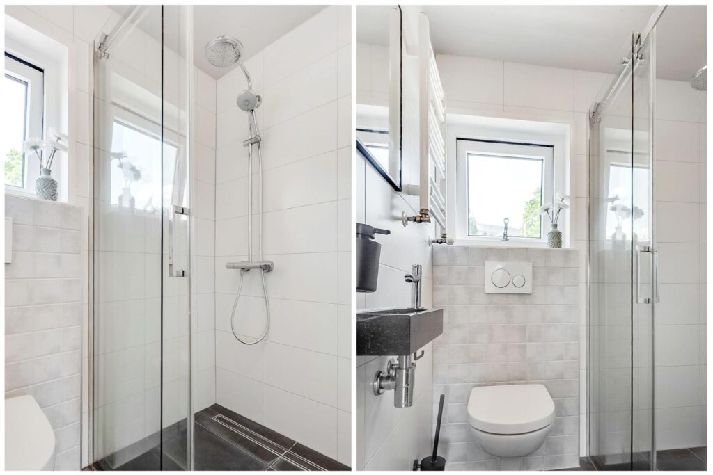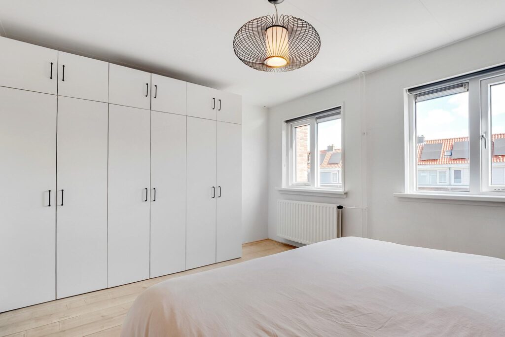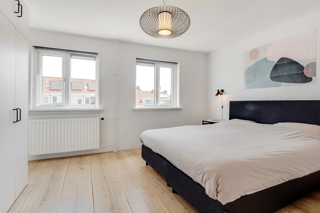 Op de overloop heb je toegang tot een ruime slaapkamer aan de achterzijde. Aan de voorzijde bevindt zich een tweede slaapkamer en een badkamer. De badkamer is voorzien van een inloopdouche, hangtoilet, fonteintje en designradiator.