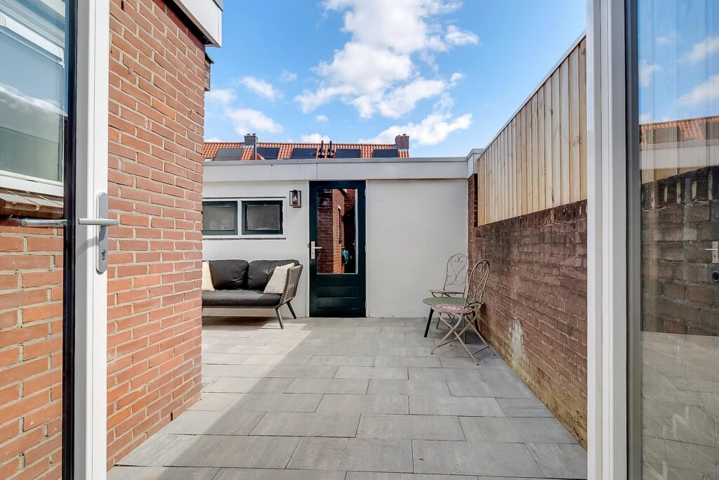 Via de voortuin (ca.13 m²) kom je binnen in de hal met vernieuwde meterkast (2023) en toegang tot de woonkamer. De woonkamer heeft veel lichtinval en oogt ruim, mede door de plafondhoogte en de lichte PVC-vloer die in 2023 is gelegd. De nette open keuken is voorzien van diverse inbouwapparatuur. Aan de achterzijde is in 2023 een uitbouw gerealiseerd en de gevel is voorzien van PIR-isolatiemateriaal. Verder vindt u op de begane grond een ruim toilet met wastafel en wasmachineaansluiting. Via de openslaande deuren kom je in de achtertuin (ca. 22 m²), gelegen op het noordoosten, die beschikt over een achterom en een vrijstaande stenen berging.