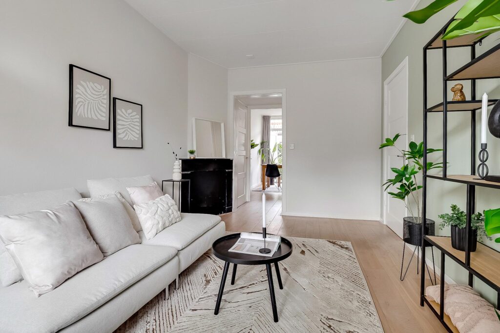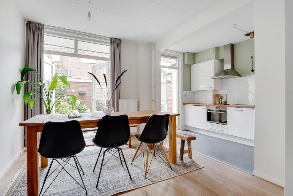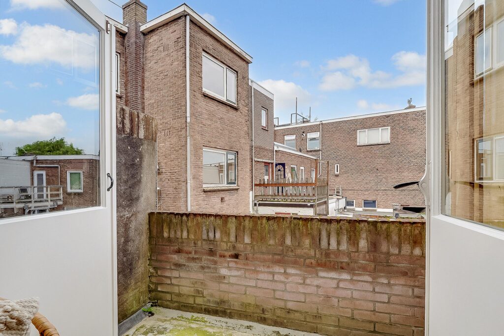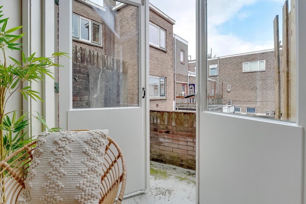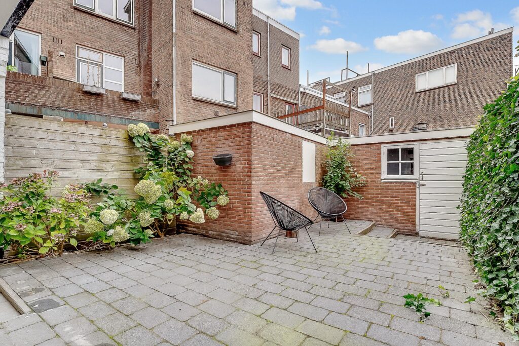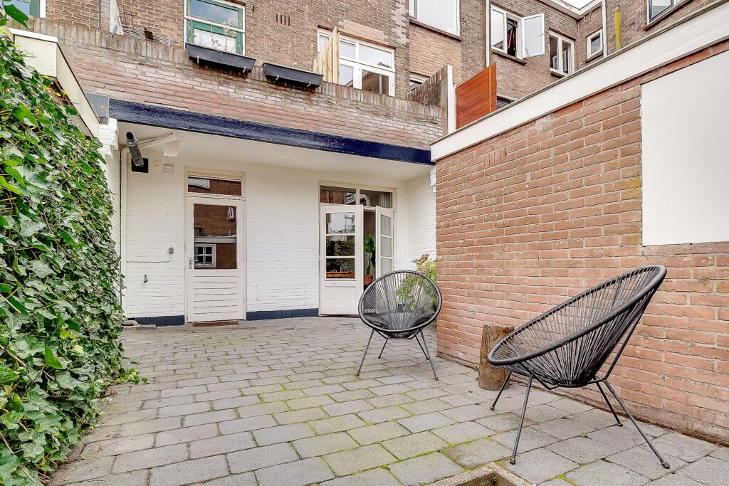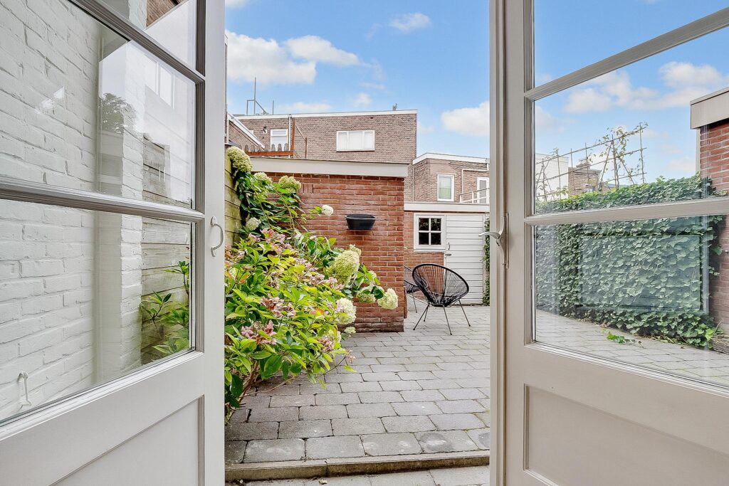 Begane grond: entree/hal en toilet. Moderne badkamer met douche en wastafel(meubel). Open keuken voorzien van inductiekookplaat, afzuigkap, combi-oven, vaatwasmachine en koelkast. De in de keuken weggewerkte CV-ketel (huur) is subtiel uit het zicht geplaatst. Zowel vanuit de keuken als de sfeervolle woonkamer heb je toegang tot de achtertuin met een praktische stenen berging. De sfeervolle woonkamer met zijn karakteristieke voor- en achterkamer, twee handige inbouwkasten, originele paneeldeuren en authentieke schouwen dragen bij aan de charmante uitstraling van de ruimte.