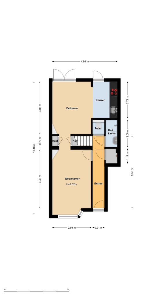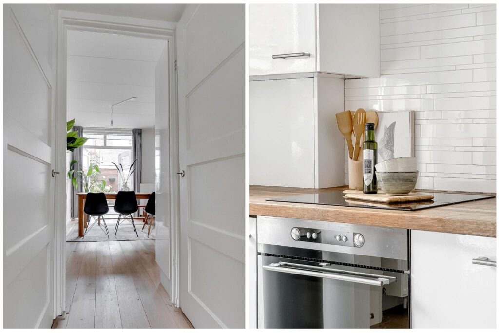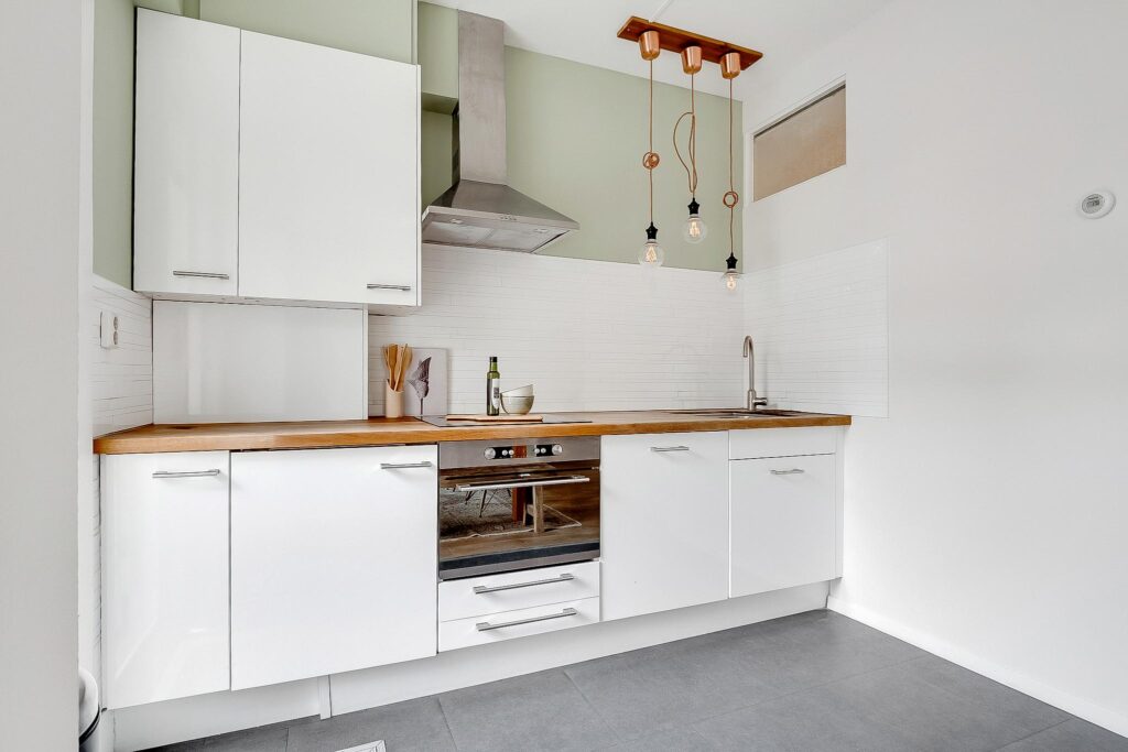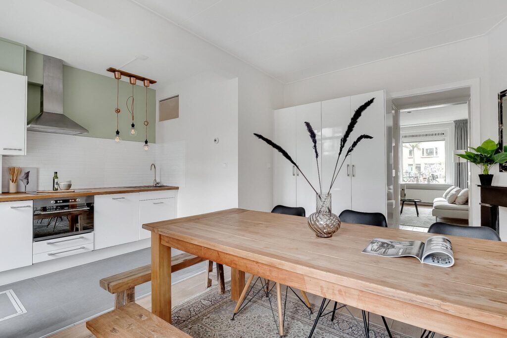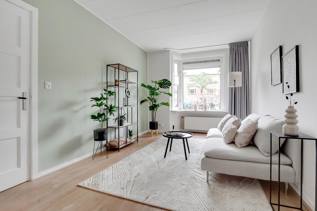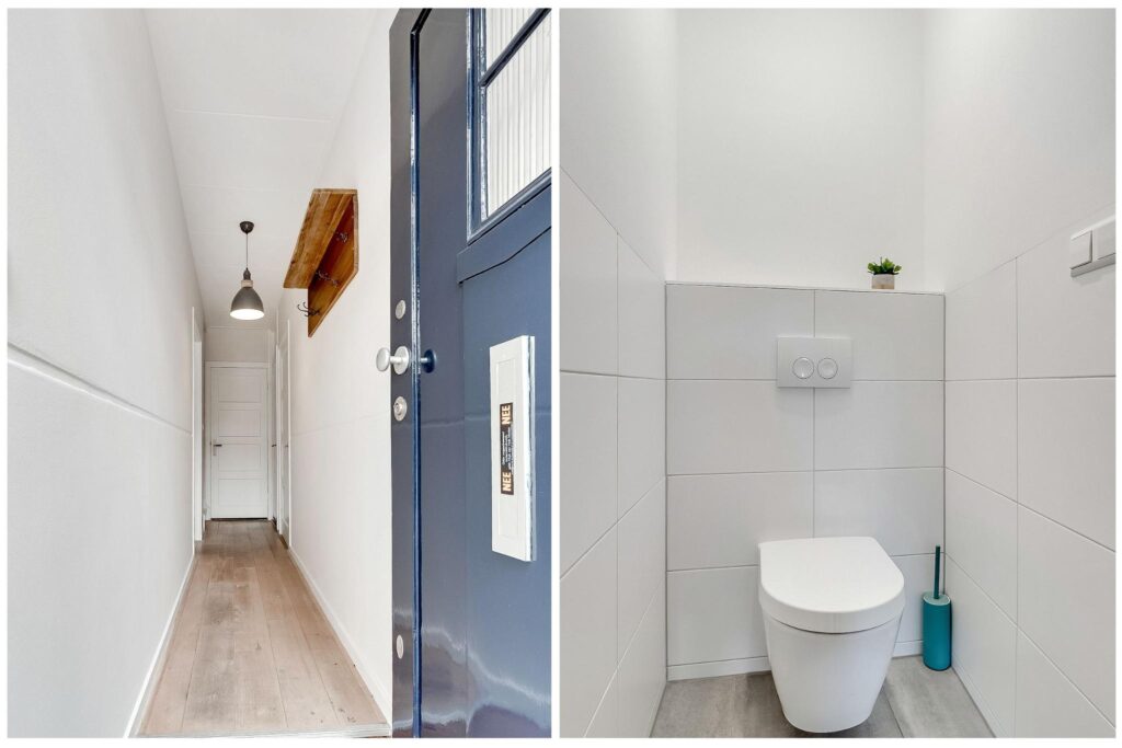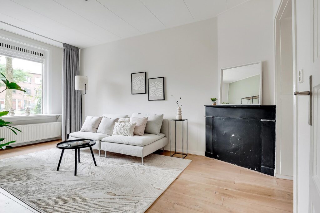 Begane grond: entree/hal en toilet. Moderne badkamer met douche en wastafel(meubel). Open keuken voorzien van inductiekookplaat, afzuigkap, combi-oven, vaatwasmachine en koelkast. De in de keuken weggewerkte CV-ketel (huur) is subtiel uit het zicht geplaatst. Zowel vanuit de keuken als de sfeervolle woonkamer heb je toegang tot de achtertuin met een praktische stenen berging. De sfeervolle woonkamer met zijn karakteristieke voor- en achterkamer, twee handige inbouwkasten, originele paneeldeuren en authentieke schouwen dragen bij aan de charmante uitstraling van de ruimte.
