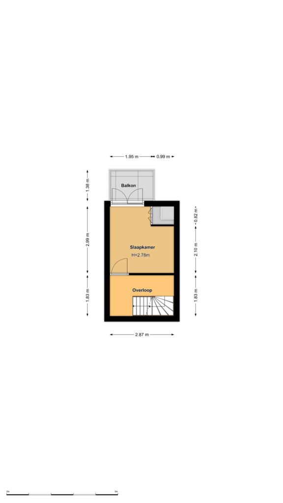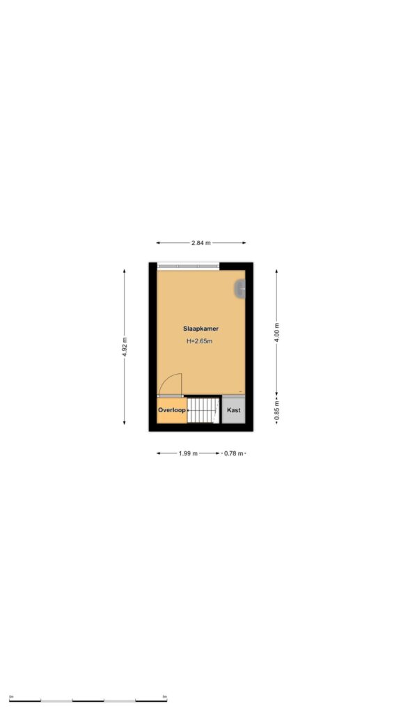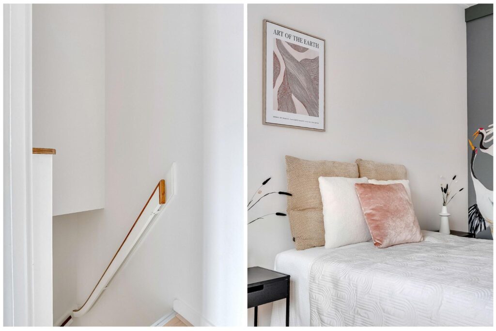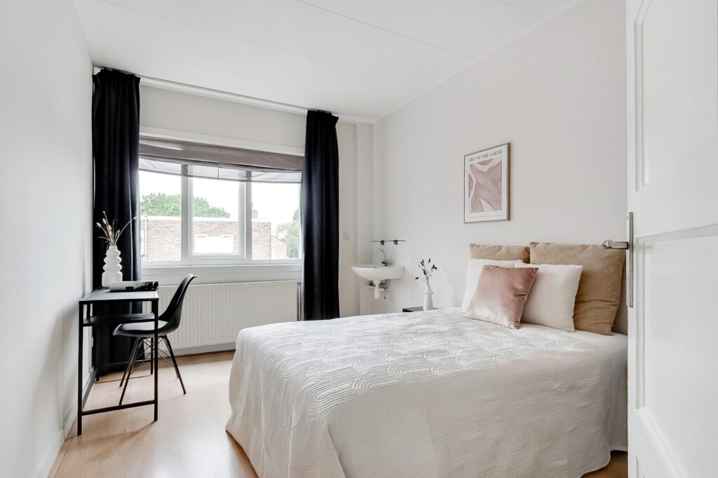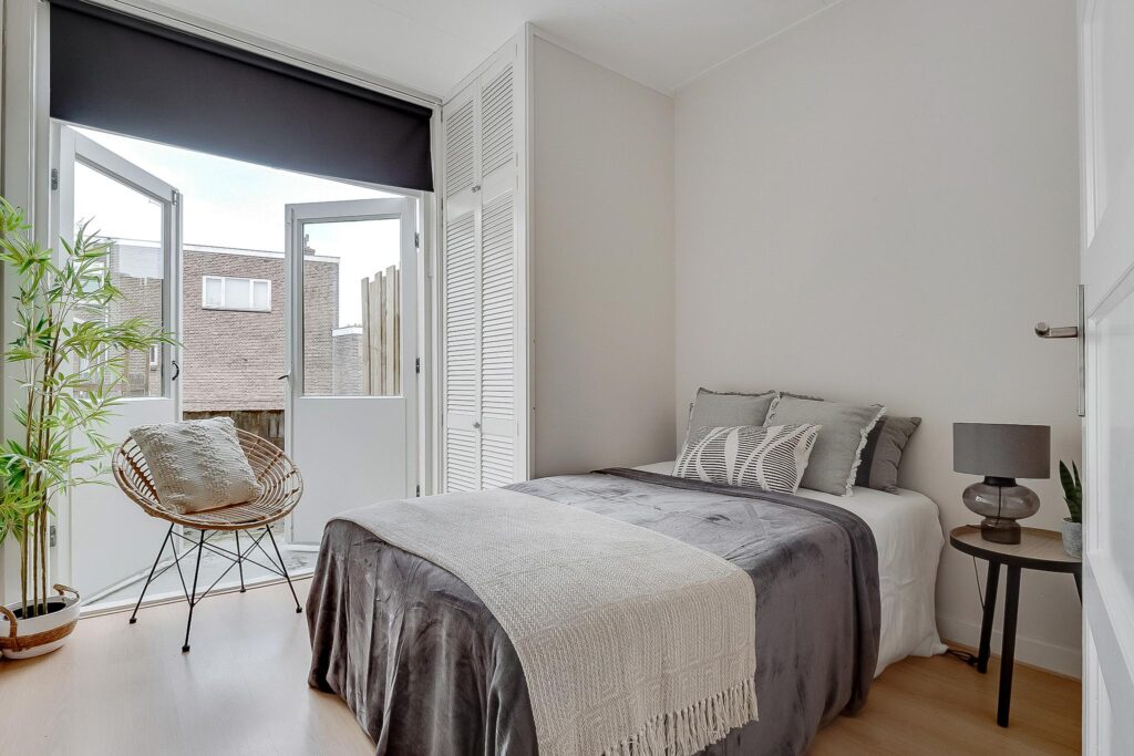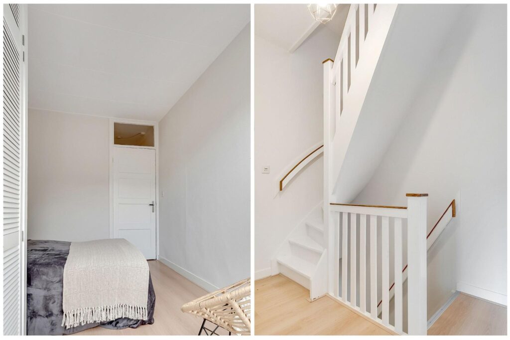 2e Verdieping: via de overloop kom je in een ruime, lichte slaapkamer, uitgerust met een wastafel en een praktische inbouwkast, wat zorgt voor extra opbergruimte en comfort.
