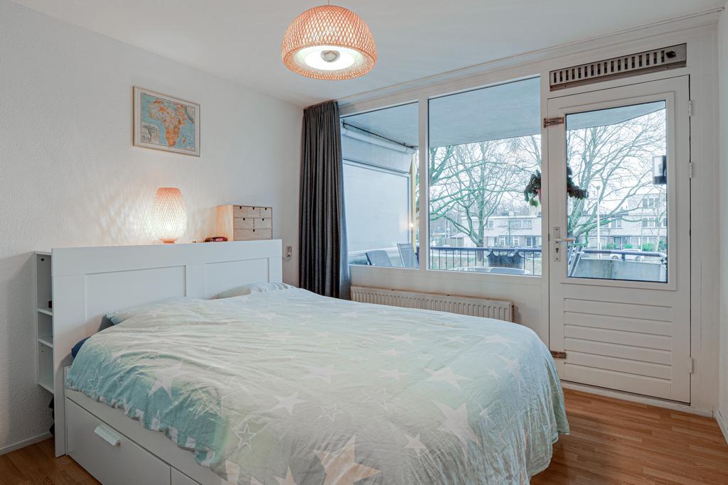 Dit mooie en sfeervolle, ruime drie kamer appartement is gelegen op de eerste verdieping van het appartementencomplex. Er is in dit goed onderhouden appartement veel lichtinval door de ligging en het mooie vrije uitzicht. Het appartement is goed geïsoleerd en de indeling is praktisch. Extra aantrekkelijk is het balkon aan de voorzijde welke zowel vanuit de woonkamer en de slaapkamer toegankelijk. Er is een eigen berging in de onderbouw. Het verzorgde appartementencomplex is voorzien van een liftinstallatie.